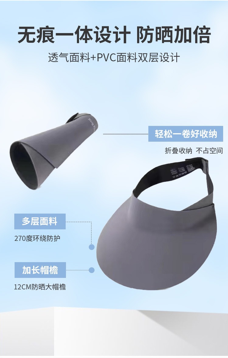 无痕一体防晒帽uv夏季时尚女帽空顶太阳帽遮阳帽轻盈透气户外运动