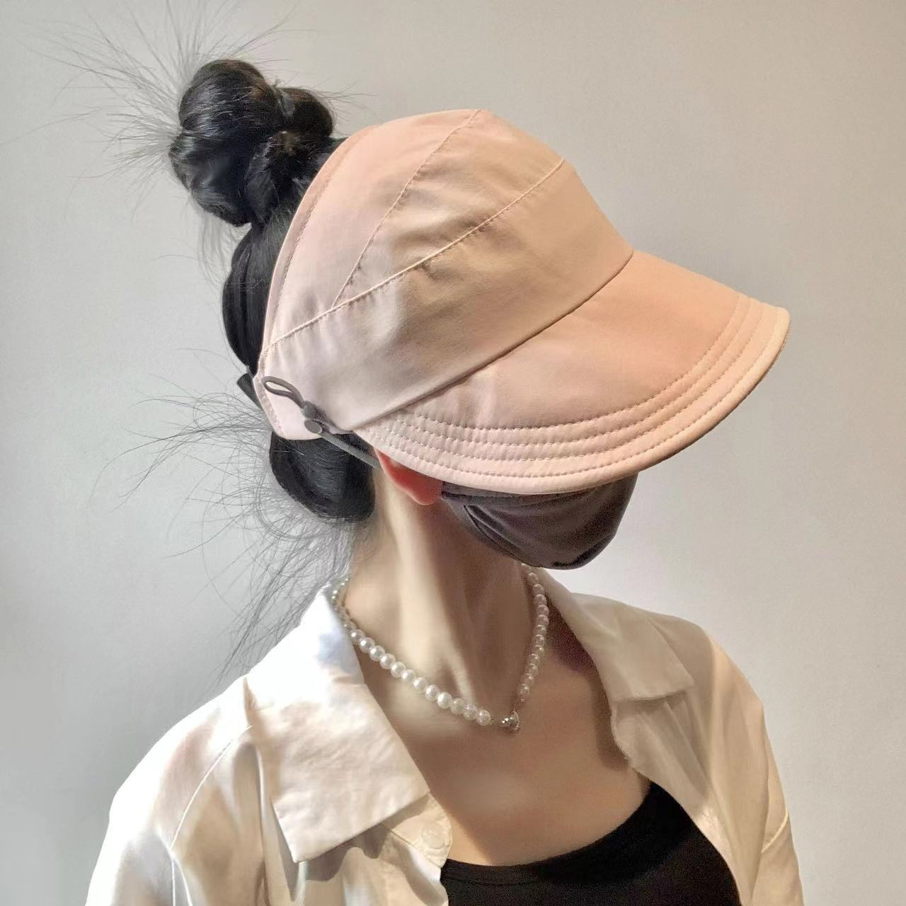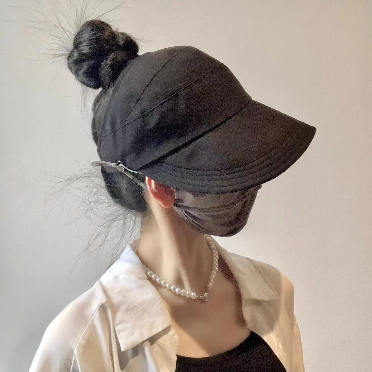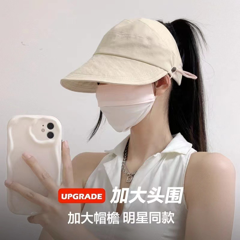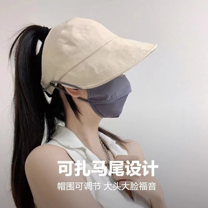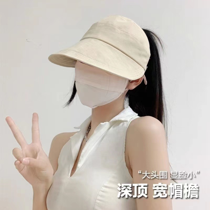 防晒遮阳遮脸空顶鸭舌帽加大头围深顶宽帽檐可挂口罩扎高马尾百搭