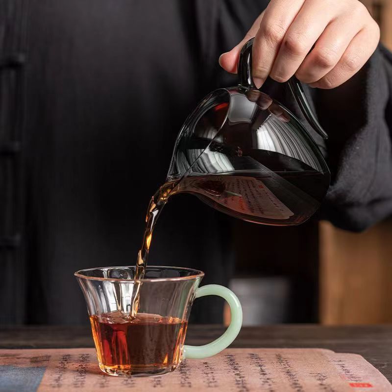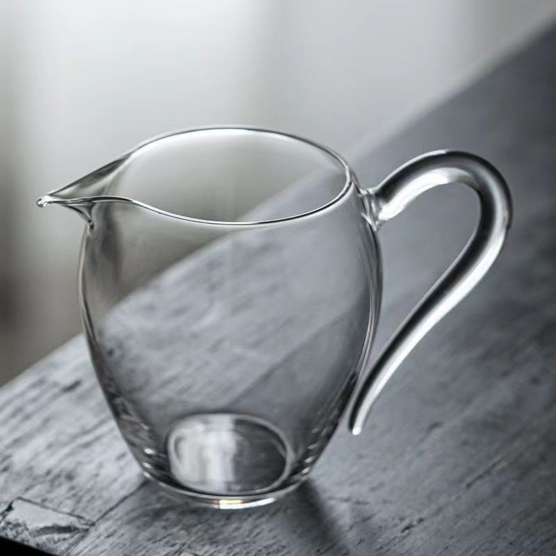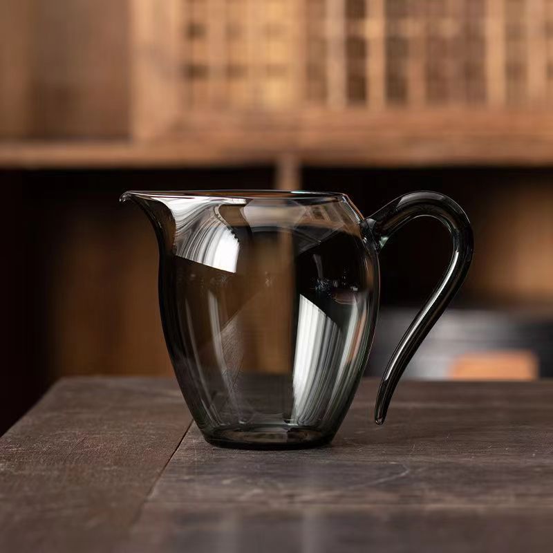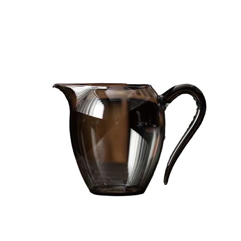耐热高硼硅玻璃公道杯 功夫茶具分茶器彩把长嘴公杯杯烟灰色茶海
