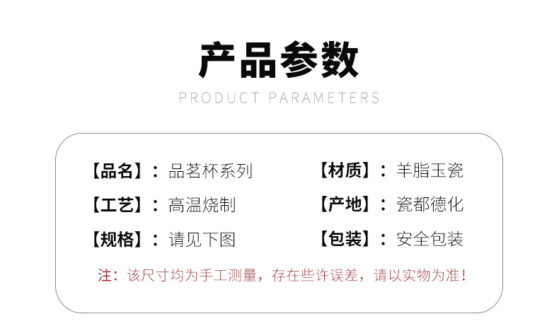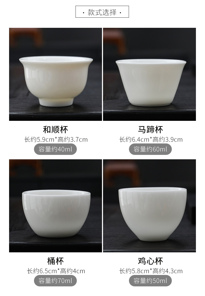 羊脂玉瓷功夫茶杯家用陶瓷品茗杯德化白瓷办公主个人茶杯茶盏茶具