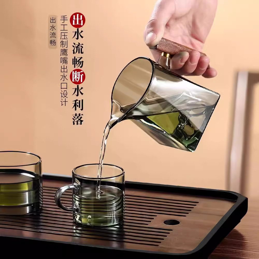 玻璃公道杯小青柑专用耐热分茶器带茶滤网一体带手柄茶海茶具套装
