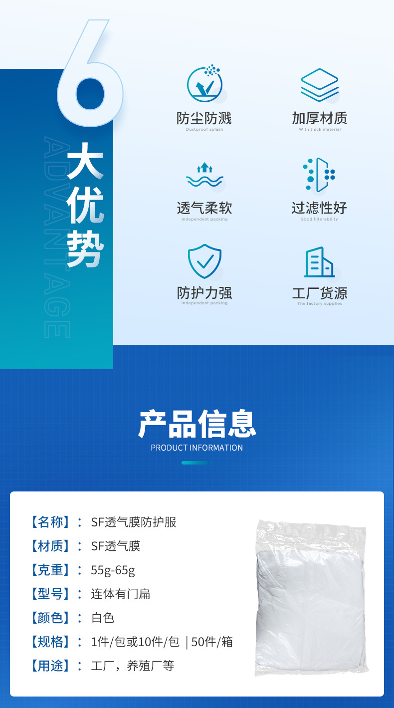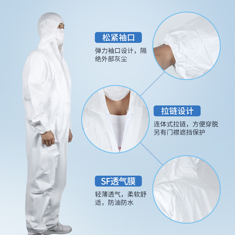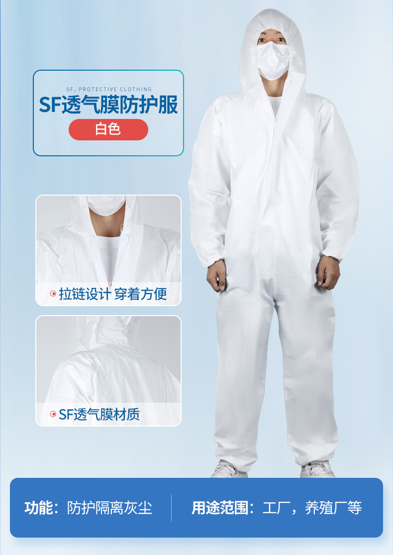 一次性防护服连体式65g带帽非连脚SF透气膜加厚养殖喷漆厂家批发