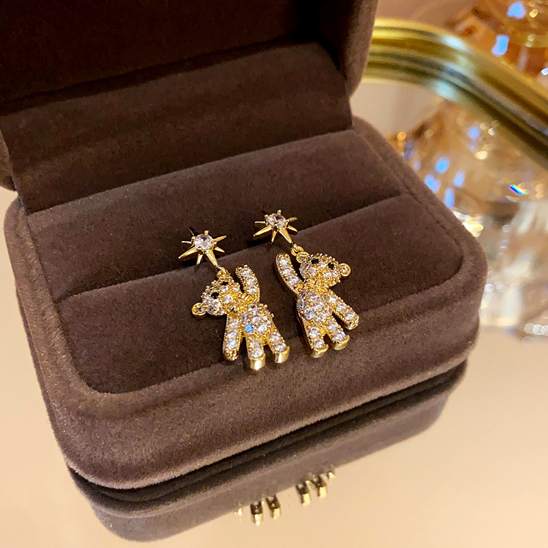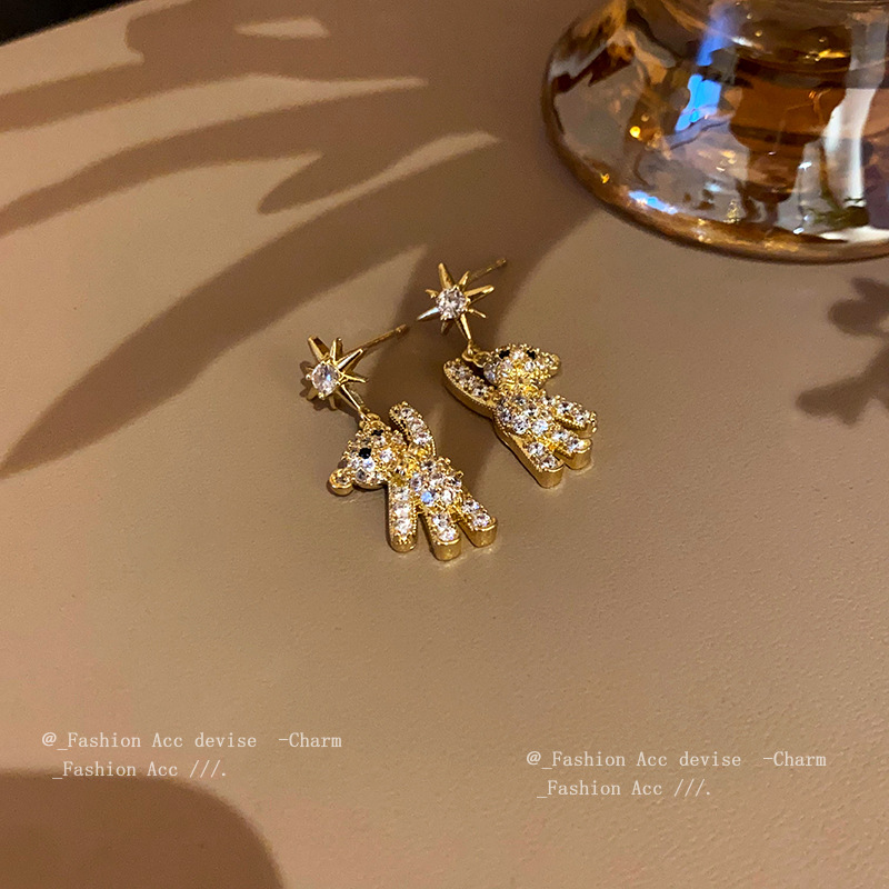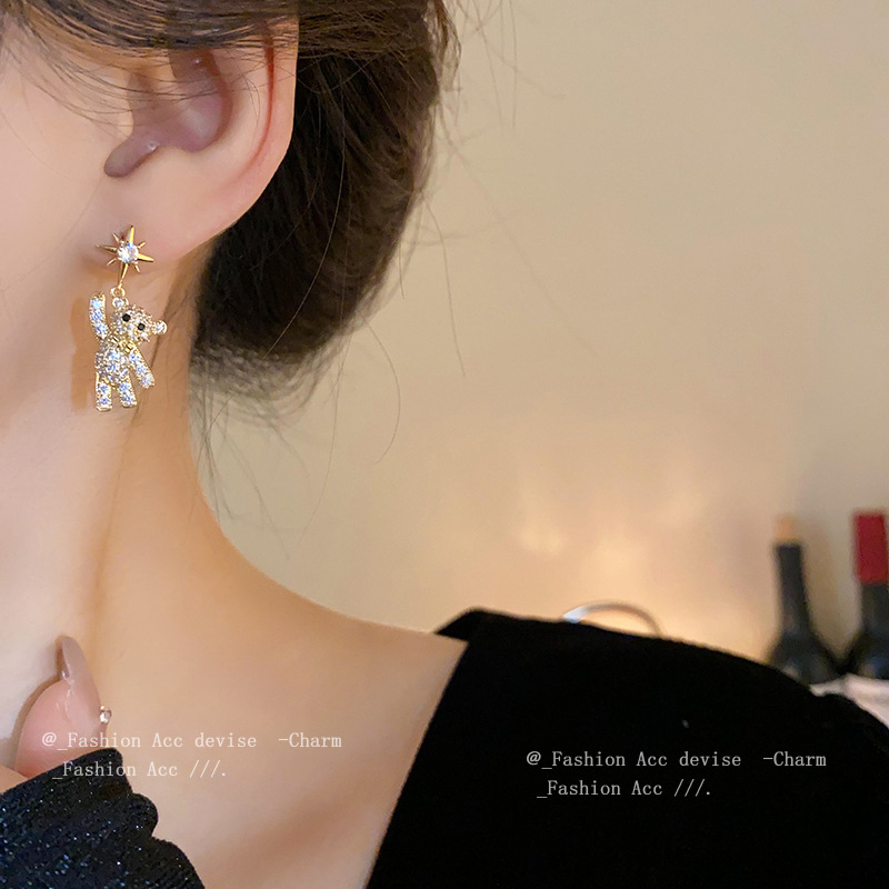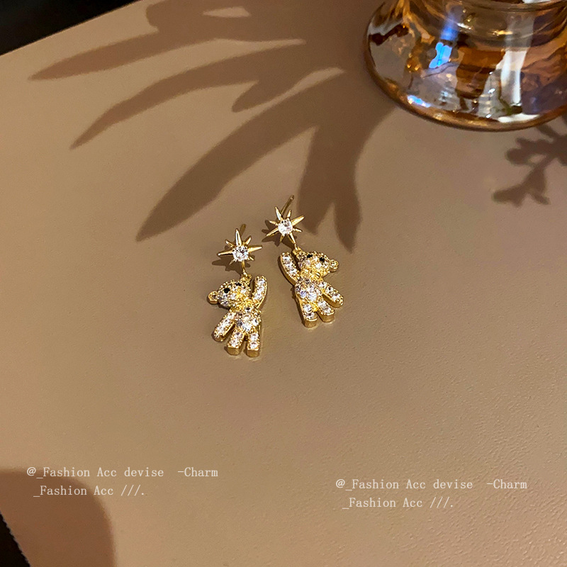 银针锆石小熊星星耳环韩系时尚设计感耳钉高级感百搭气质耳饰批发