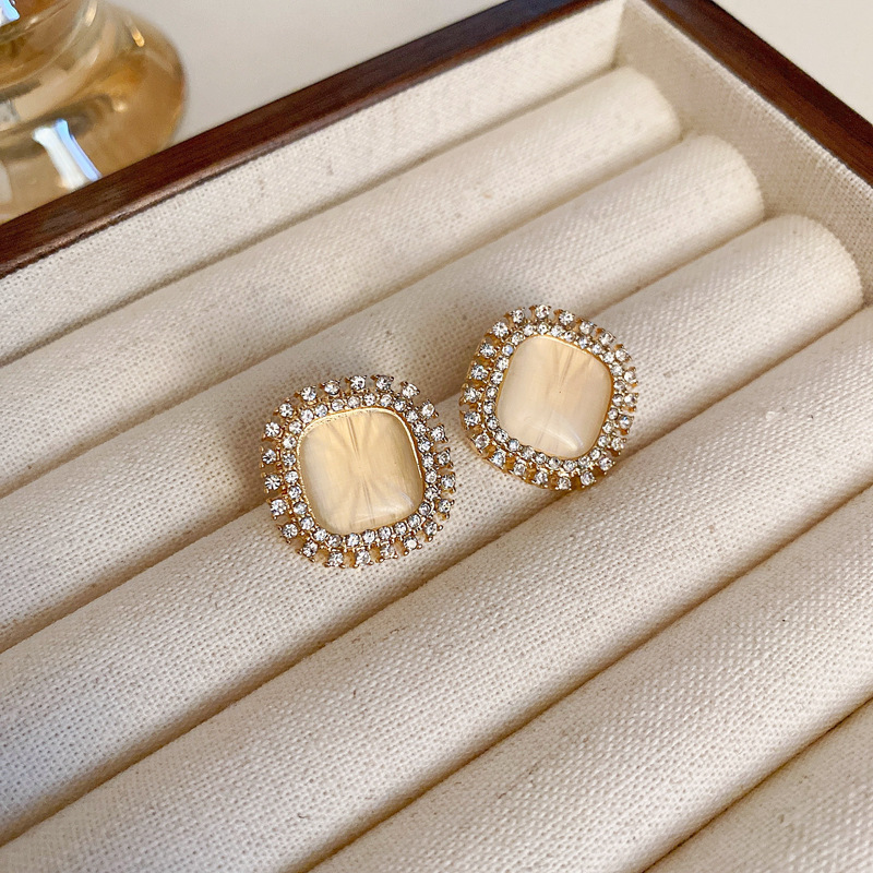 银针镶钻人鱼姬珍珠耳环时尚轻奢小众耳钉法式优雅气质耳饰批发女