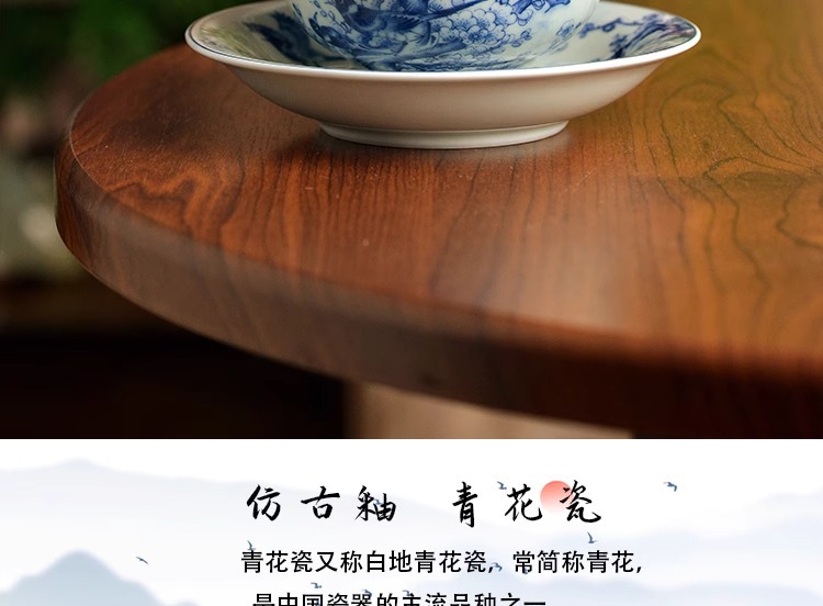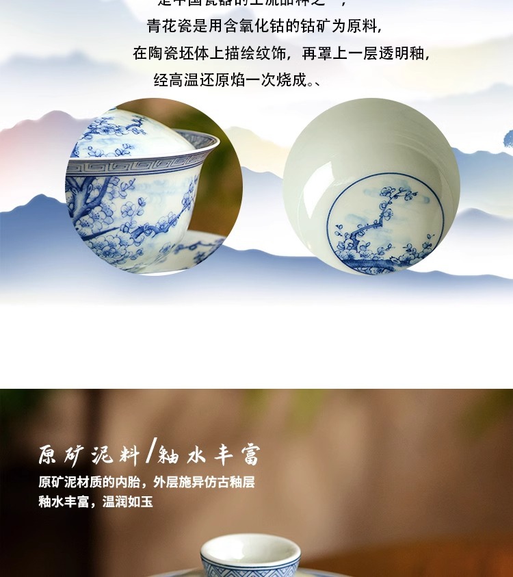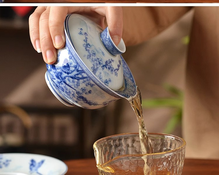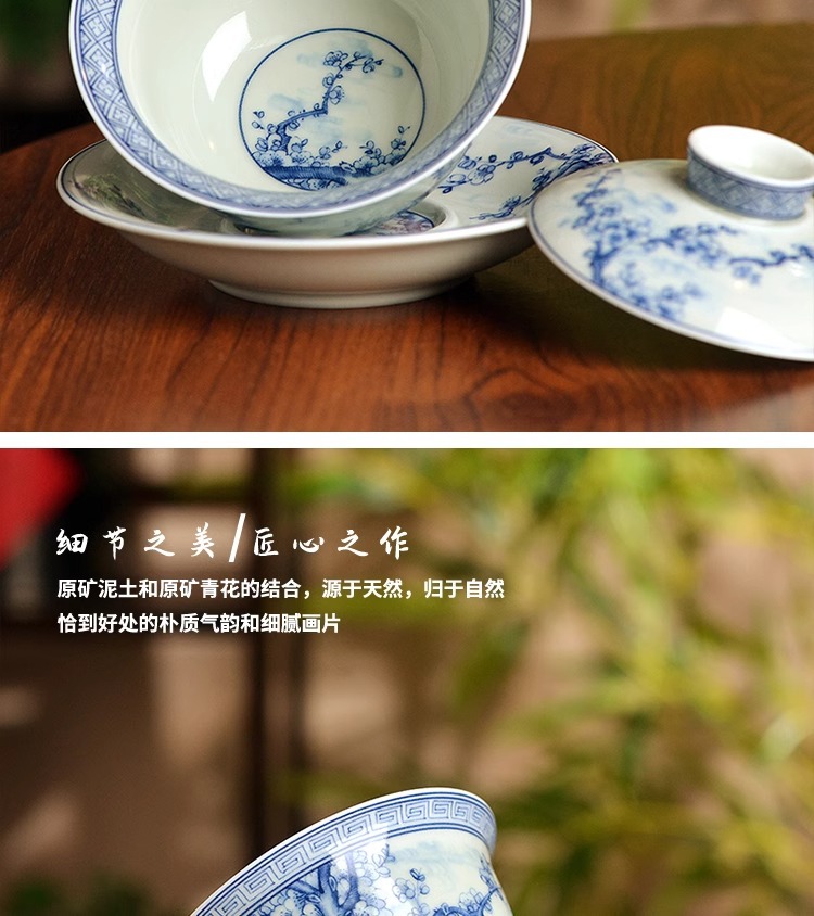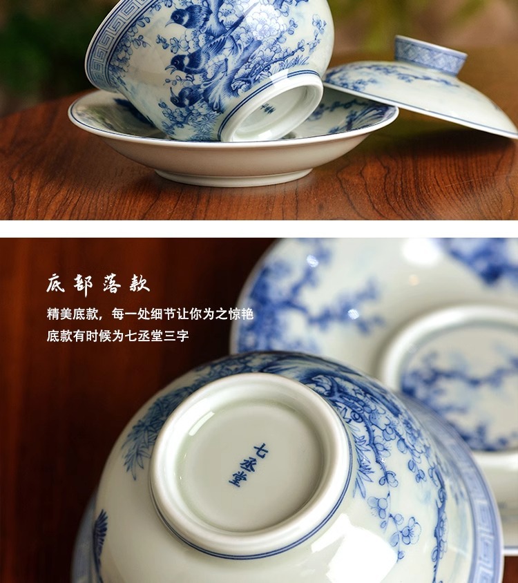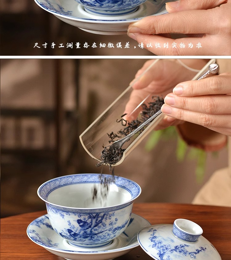 景德镇青花喜上眉梢天地人三才盖碗不烫手泡茶碗家用陶瓷功夫套装