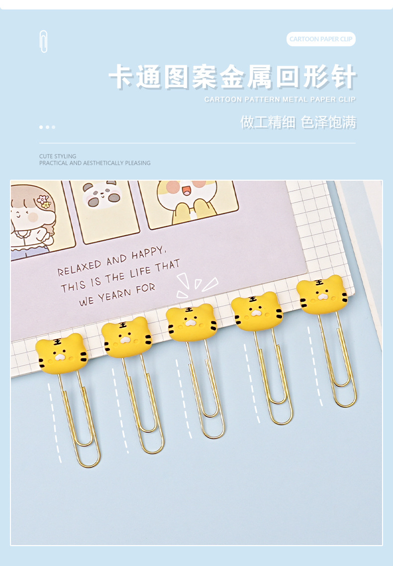 独美创意ins风卡通回形针 可爱图案金属书签学生试卷装订整理别针