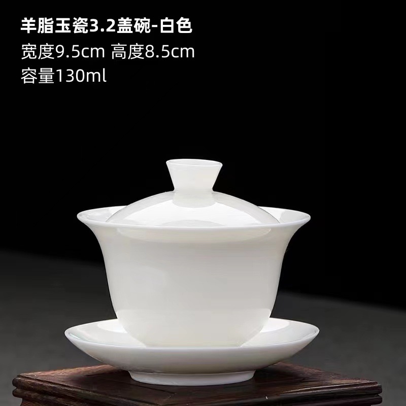 羊脂玉盖碗德化白瓷三才茶碗描金纯白泡茶碗大号功夫茶具批发送礼