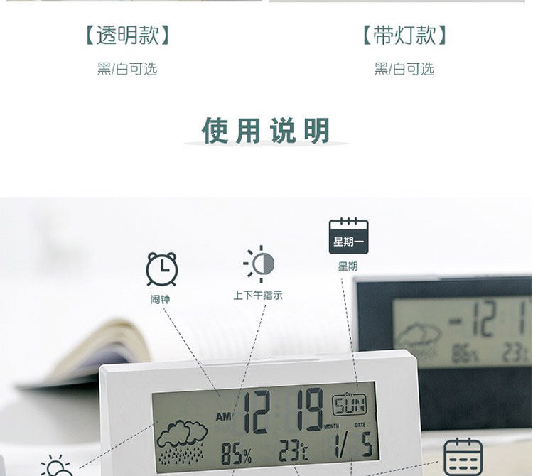 跨境闹钟闹钟学生专用时钟闹钟学生带语音夜光电子钟天气钟闹钟