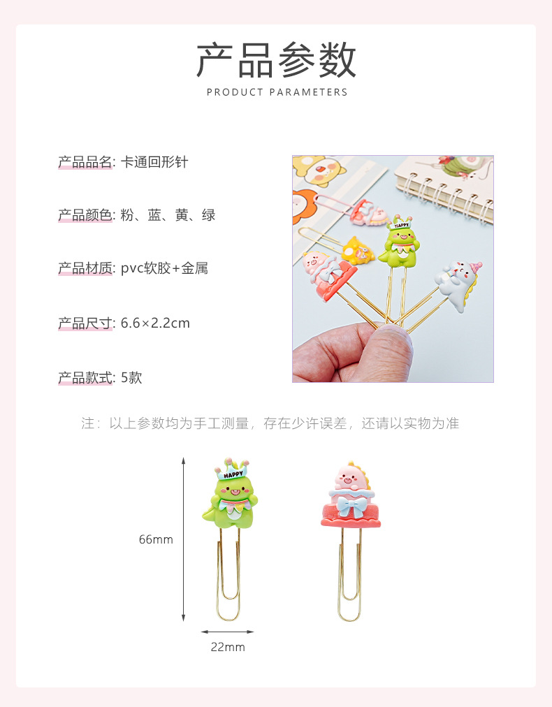 创意卡通ins回形针学生彩色动物曲别针书签夹办公金属异形回型针