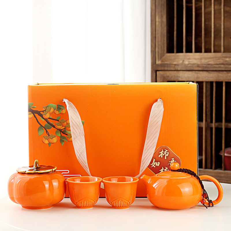 柿柿如意茶具套装柿子茶壶茶杯柿柿礼盒伴手礼年会公司会议礼品小