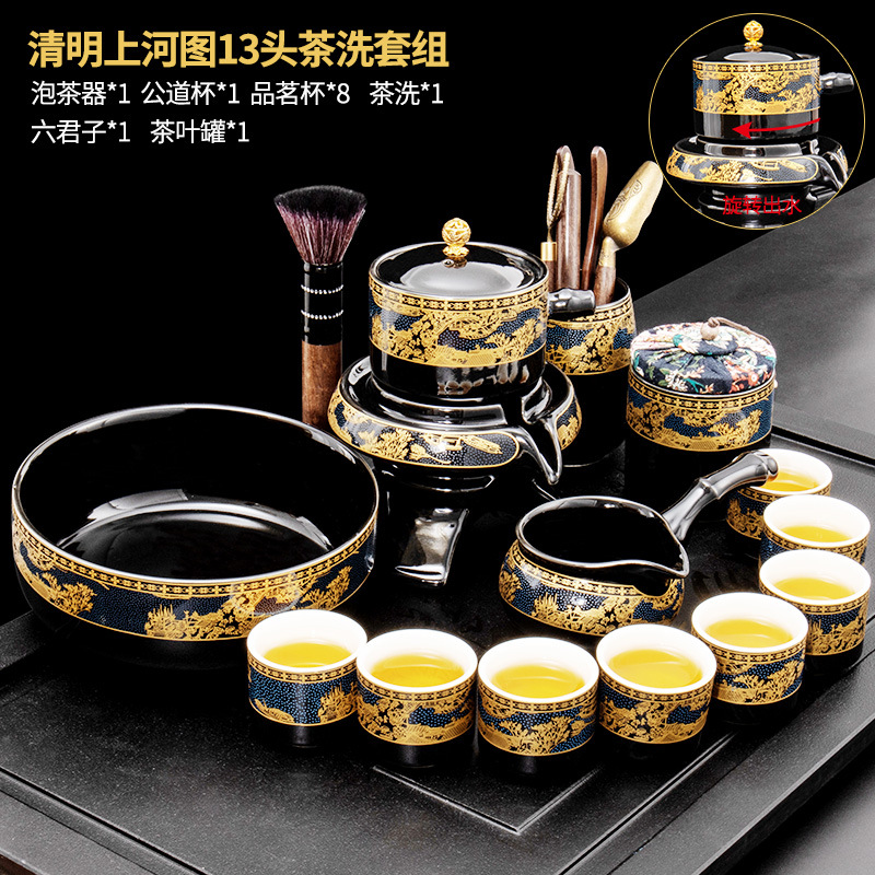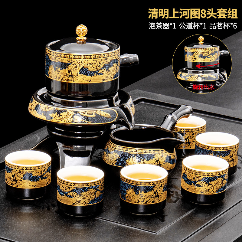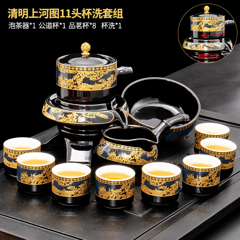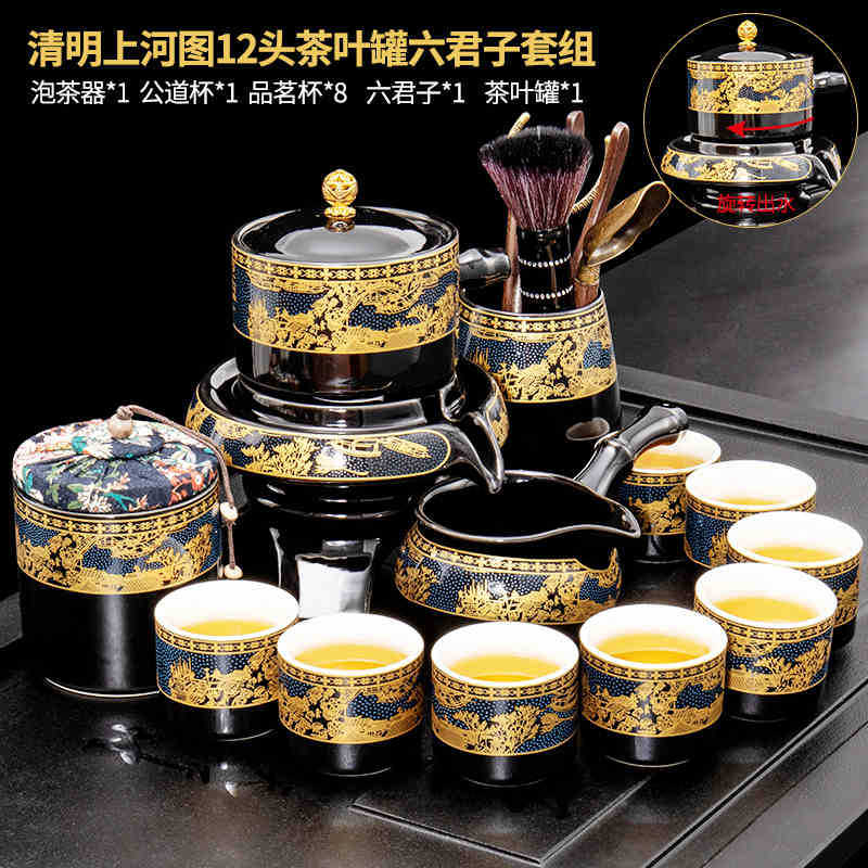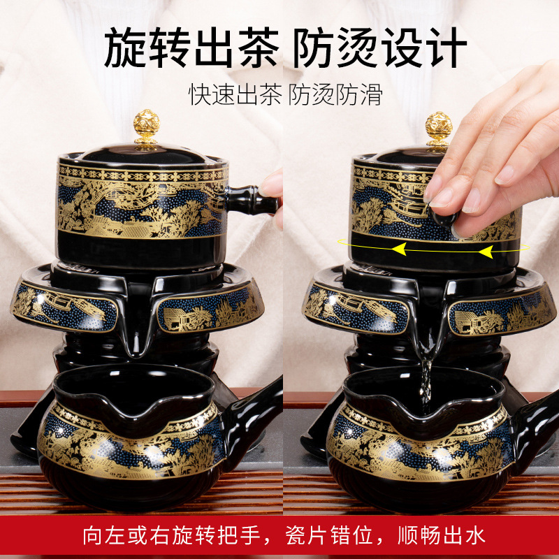 懒人茶具套装家用客厅小套半自动石磨冲茶神器功夫茶杯办公泡茶壶