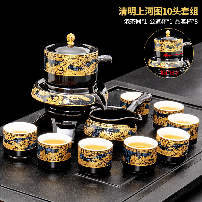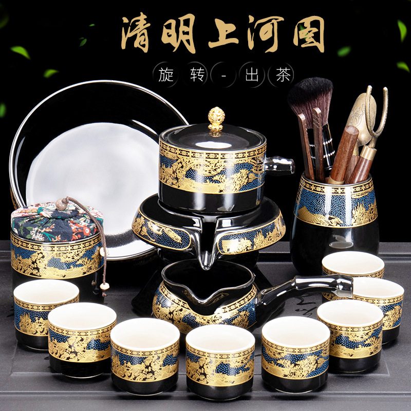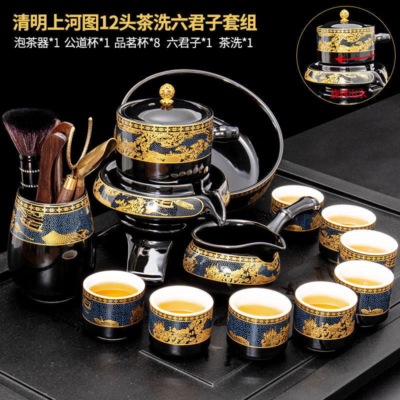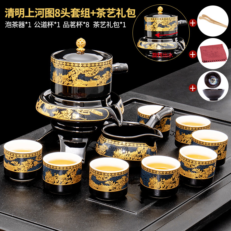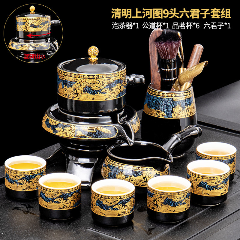 懒人茶具套装家用客厅小套半自动石磨冲茶神器功夫茶杯办公泡茶壶