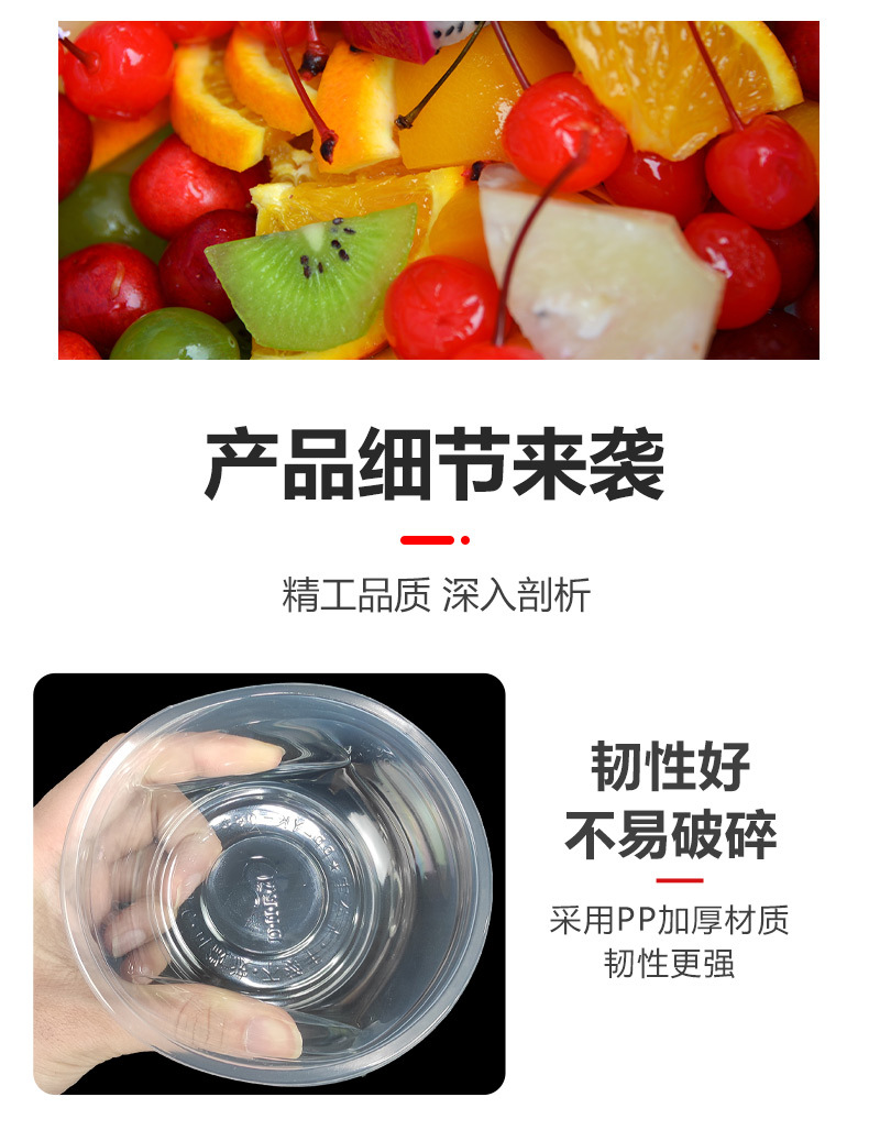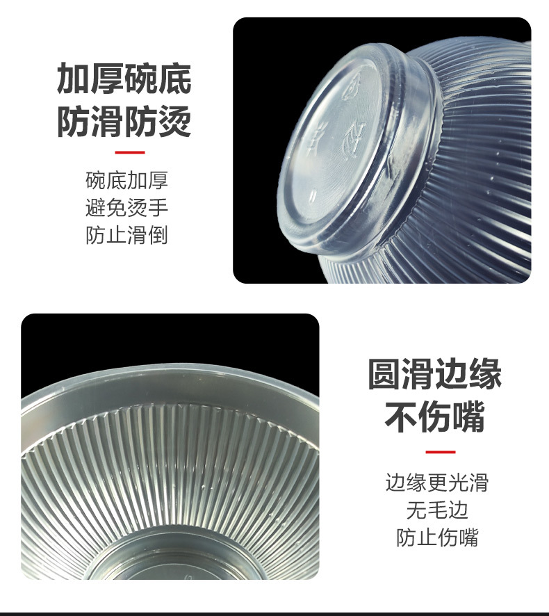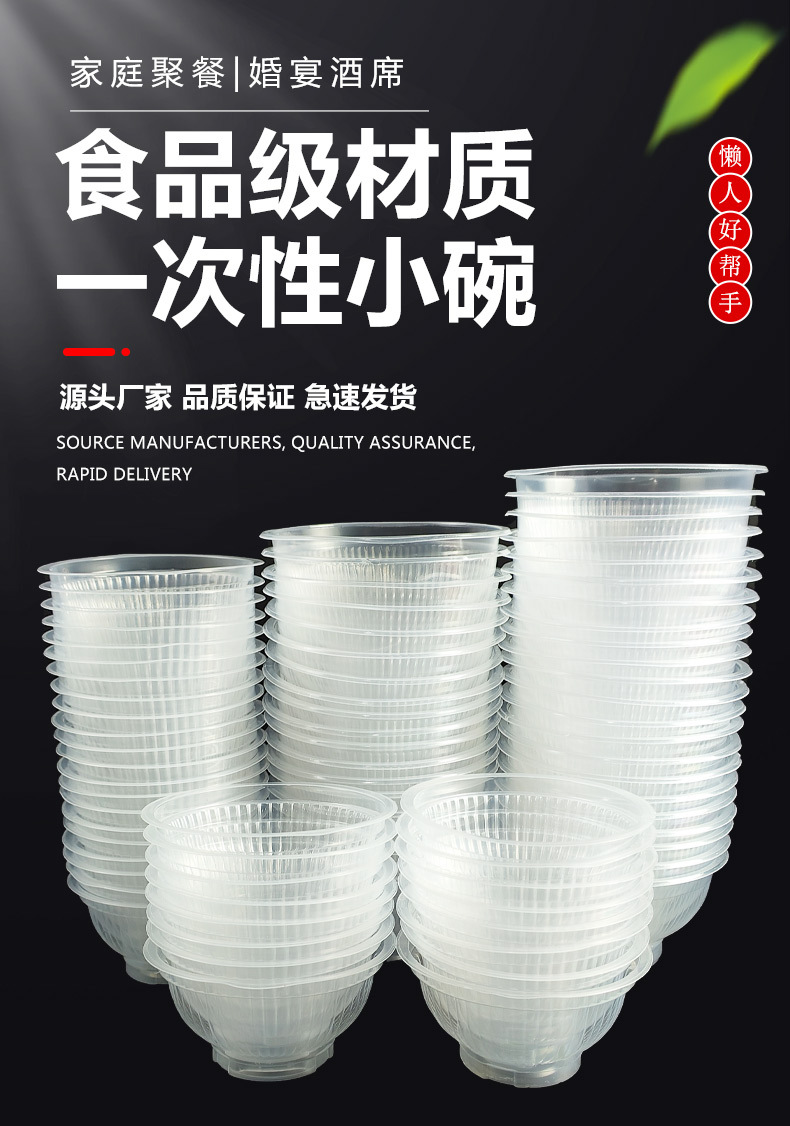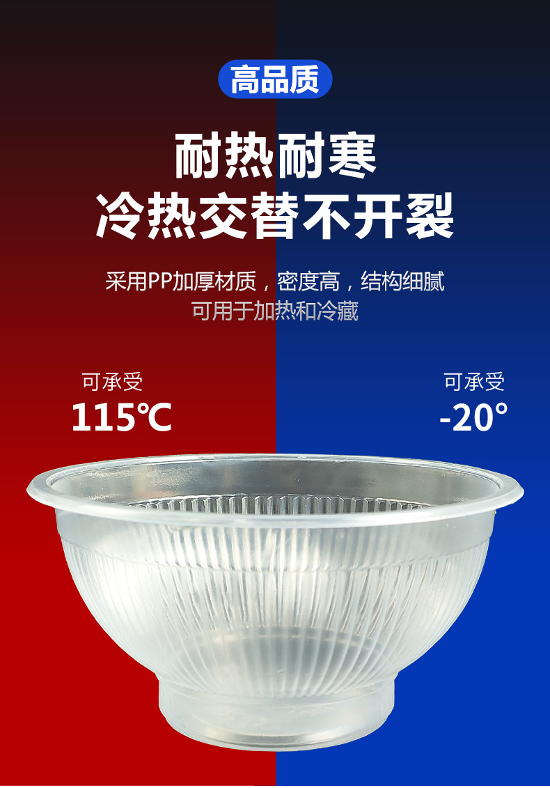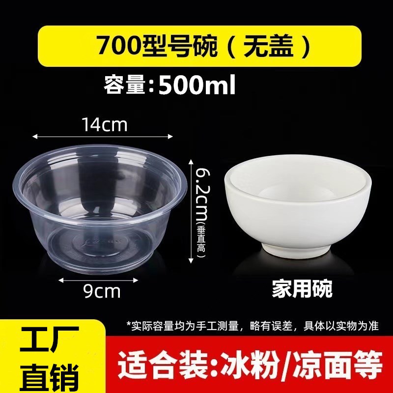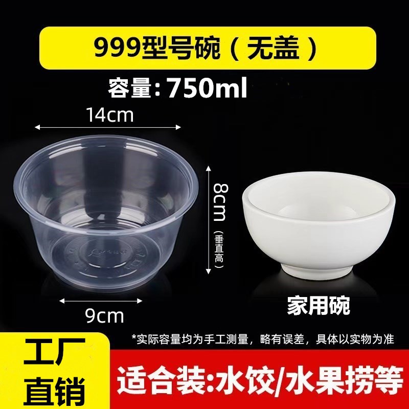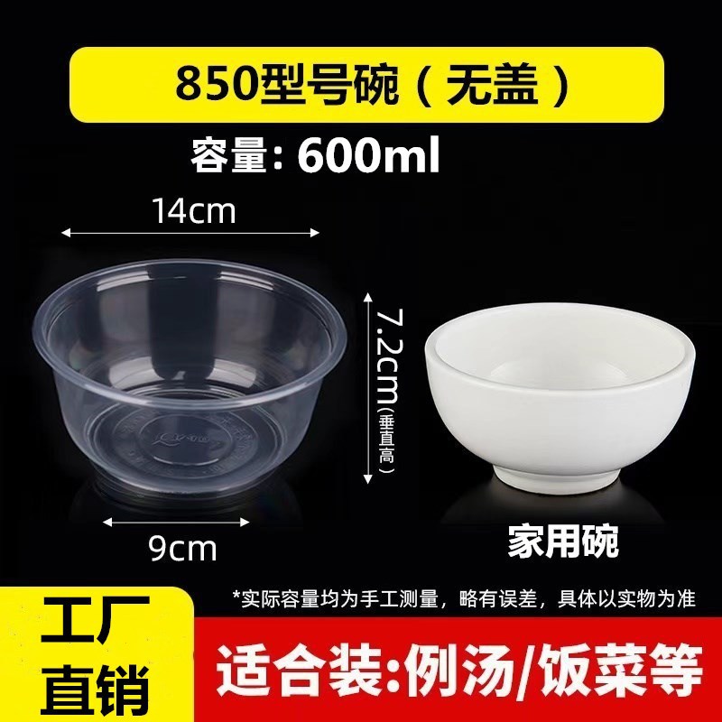 一次性塑料碗圆形餐盒透明加厚耐热汤碗外卖带盖塑料圆碗一次性碗