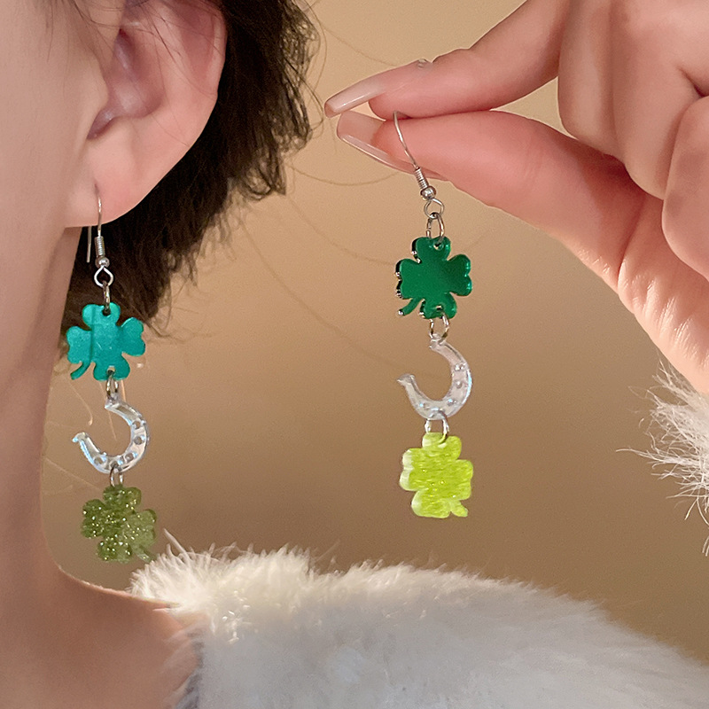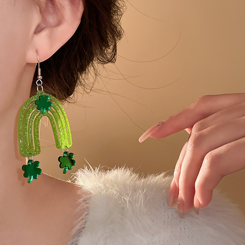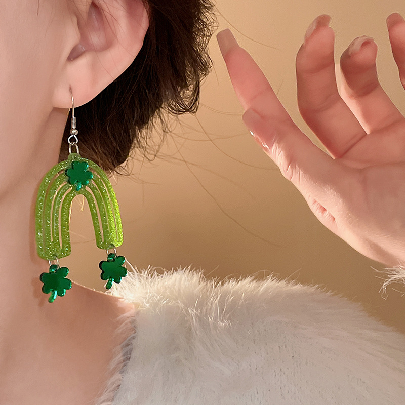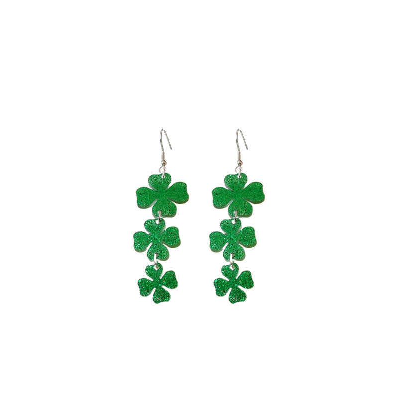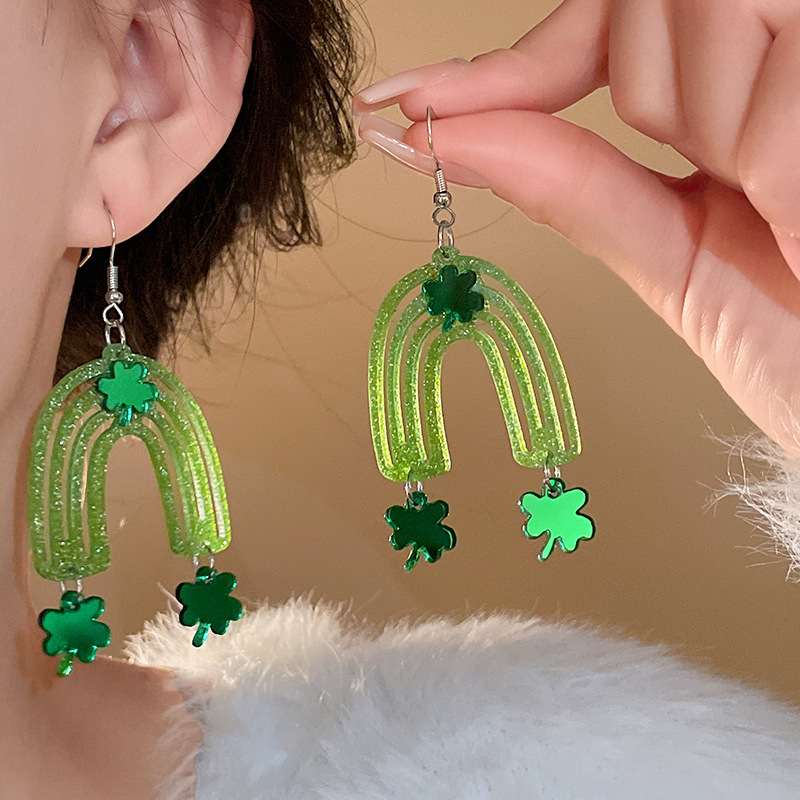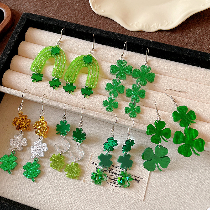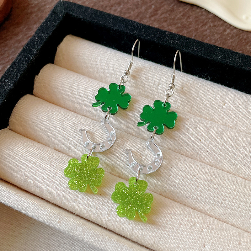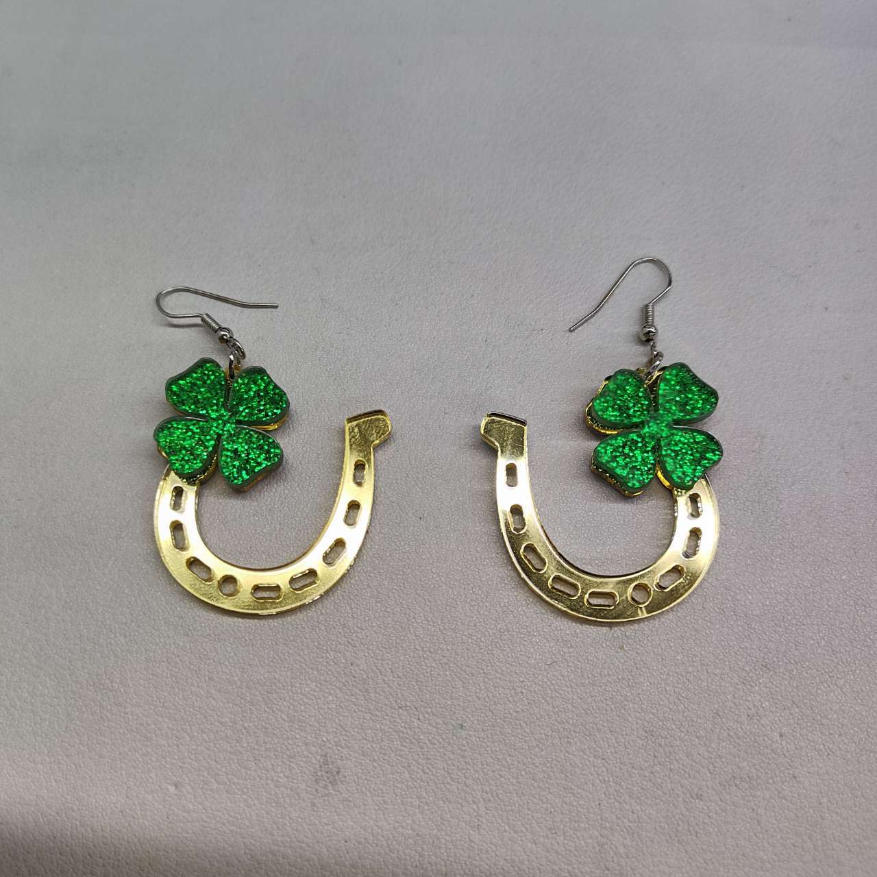 圣帕特里克节配饰耳环女四叶花帽子耳钩马蹄流苏派对耳饰首饰批发