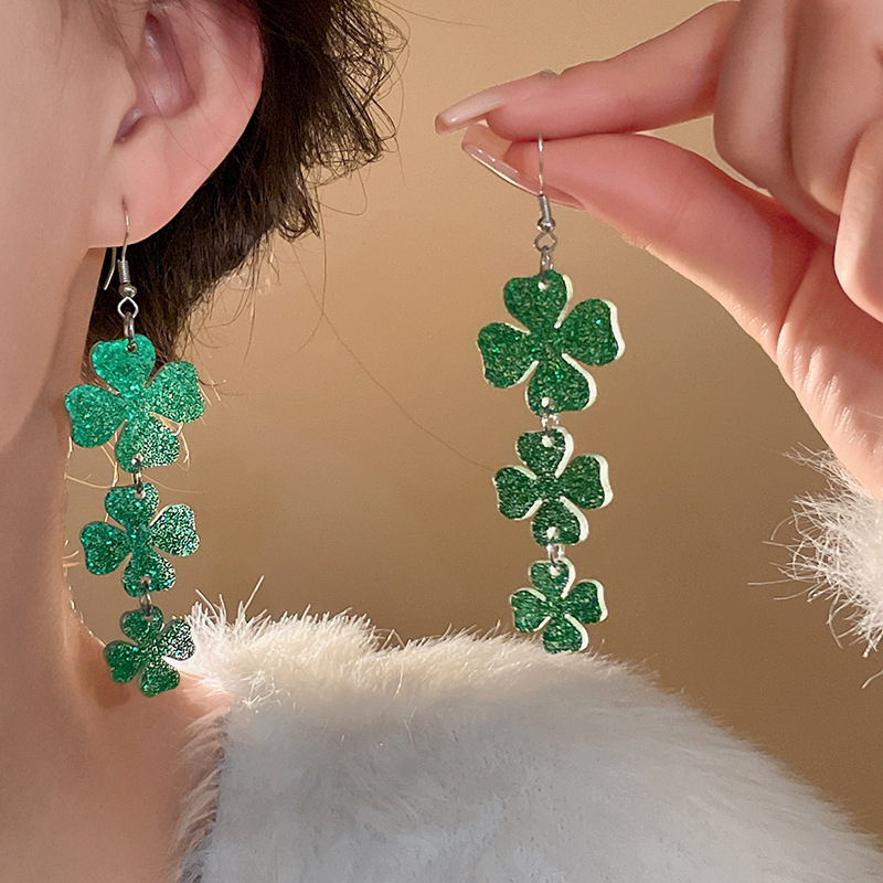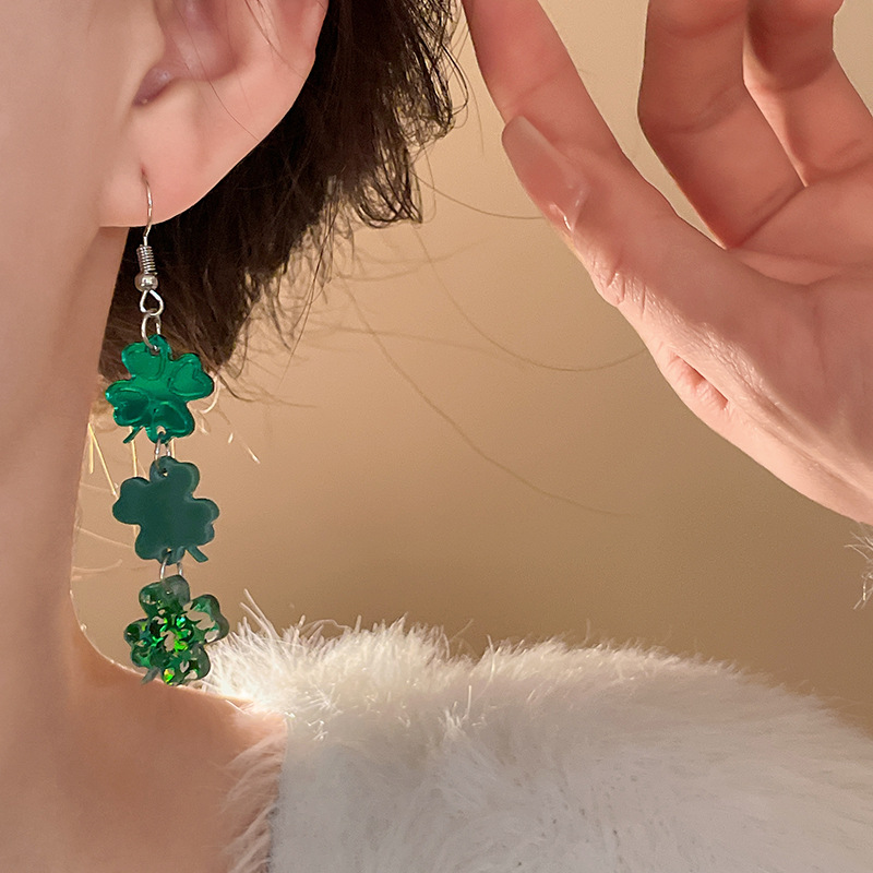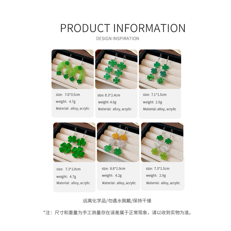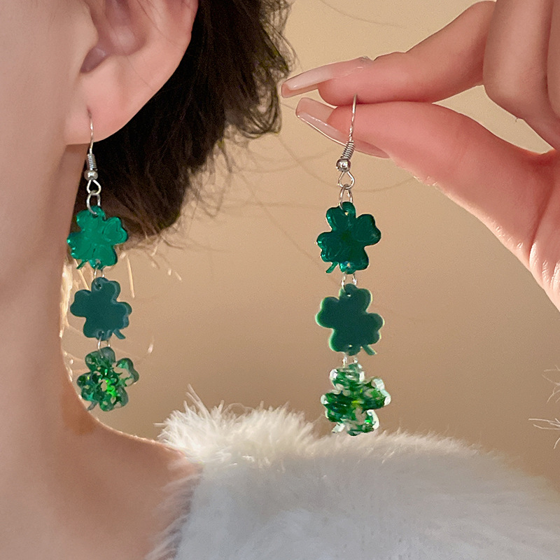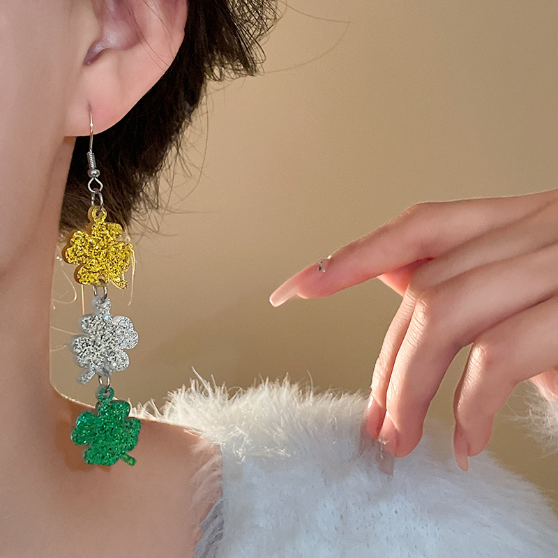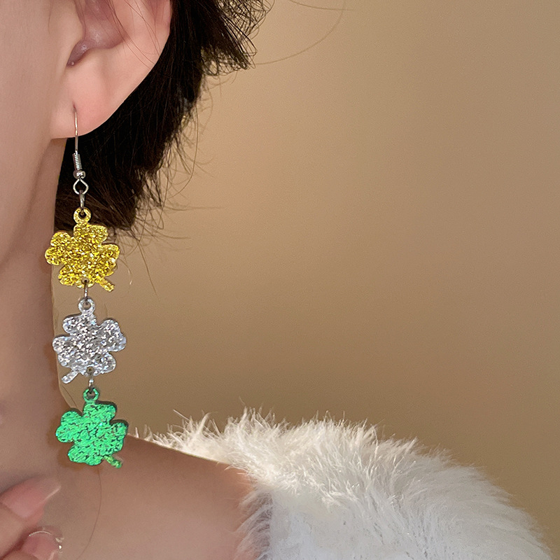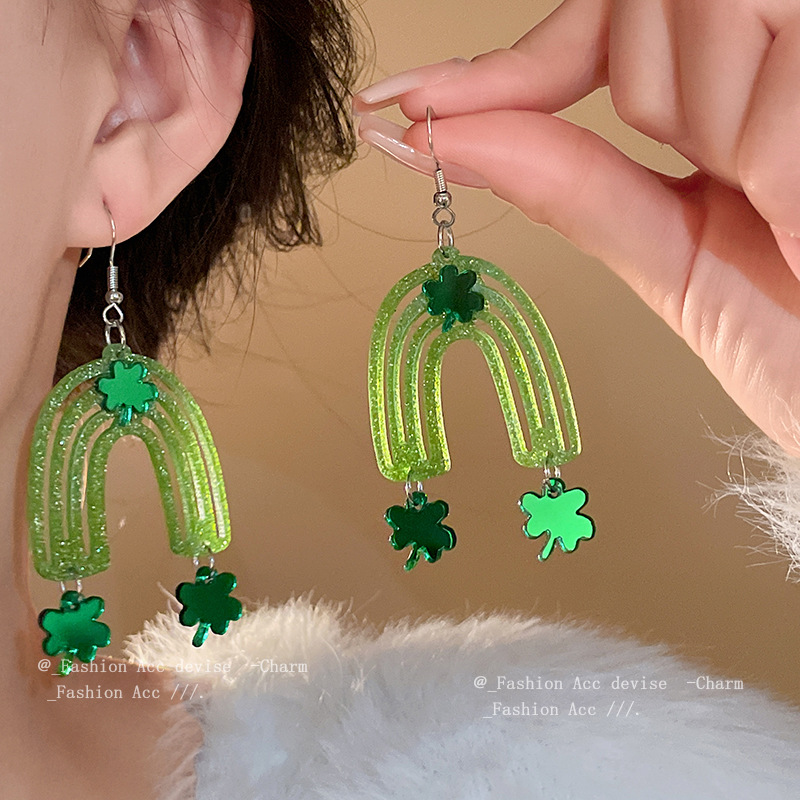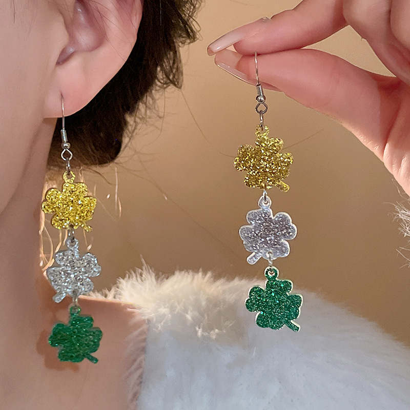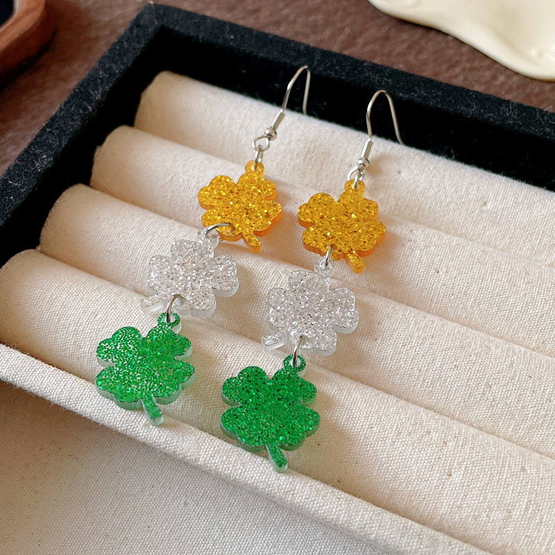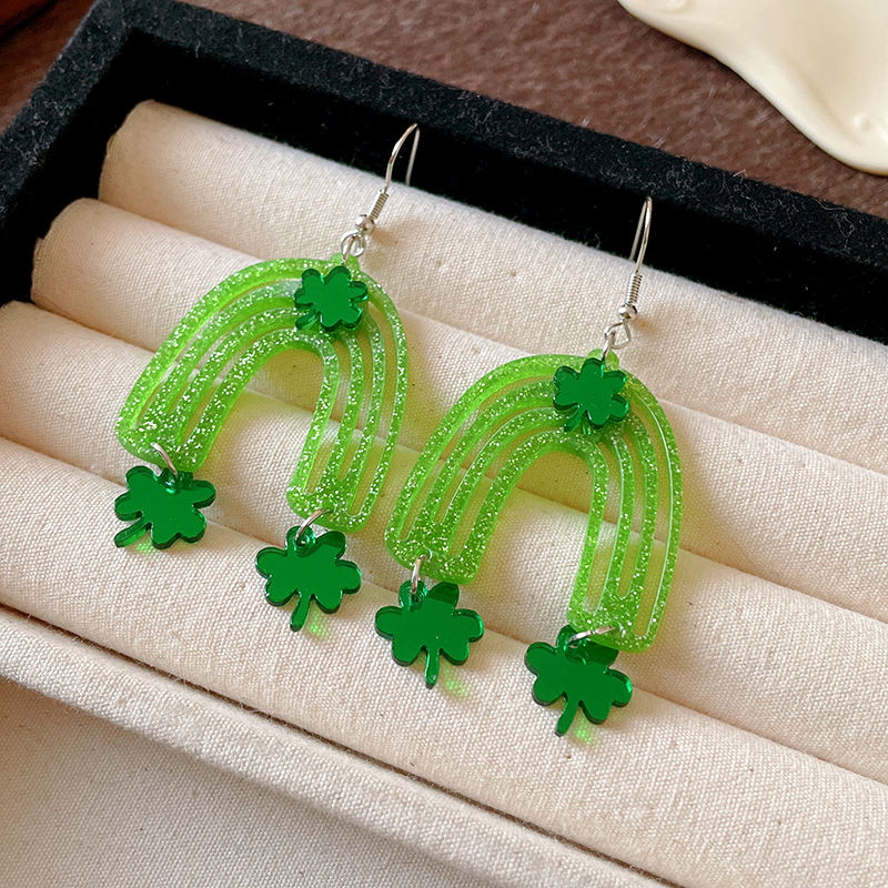 圣帕特里克节配饰耳环女四叶花帽子耳钩马蹄流苏派对耳饰首饰批发