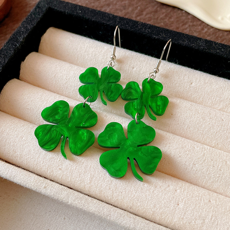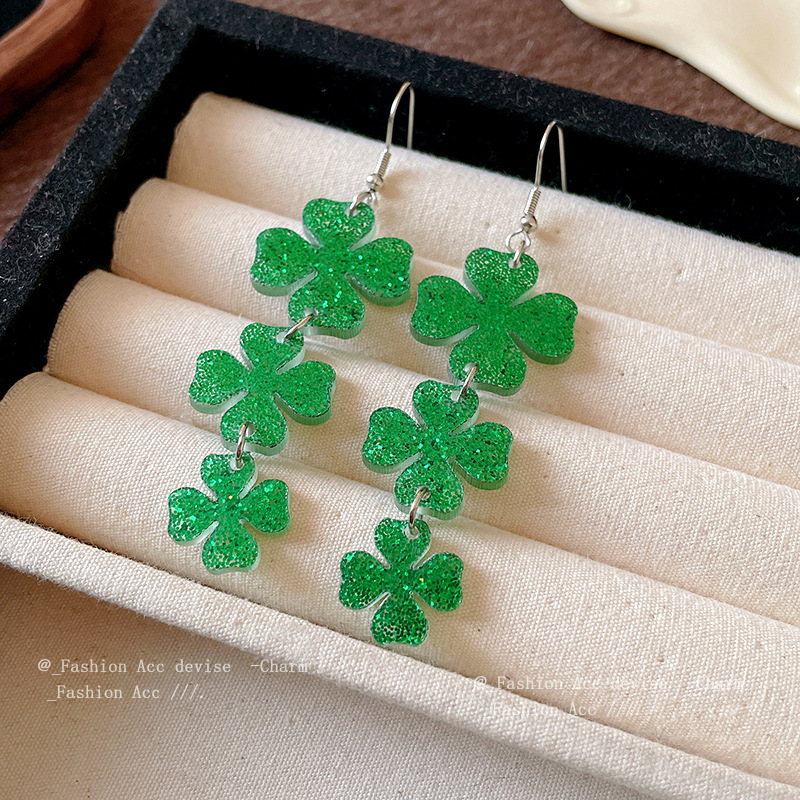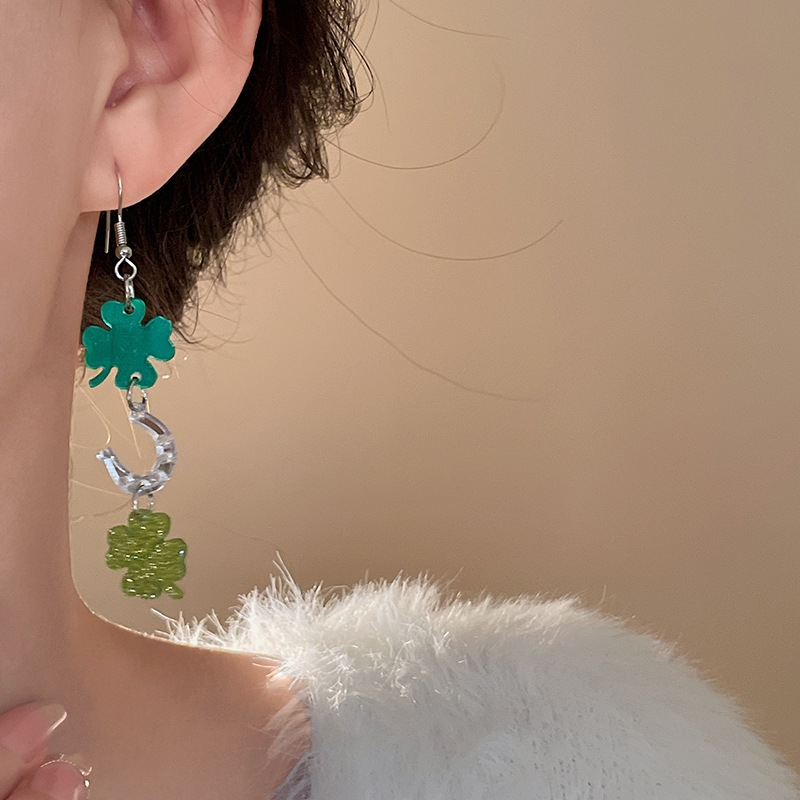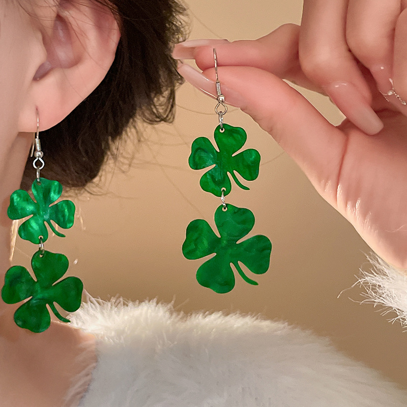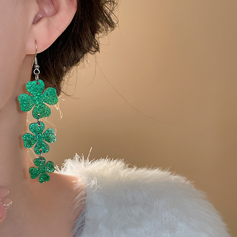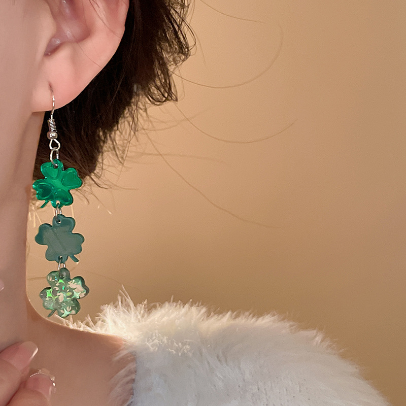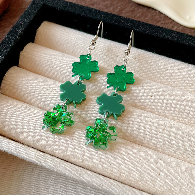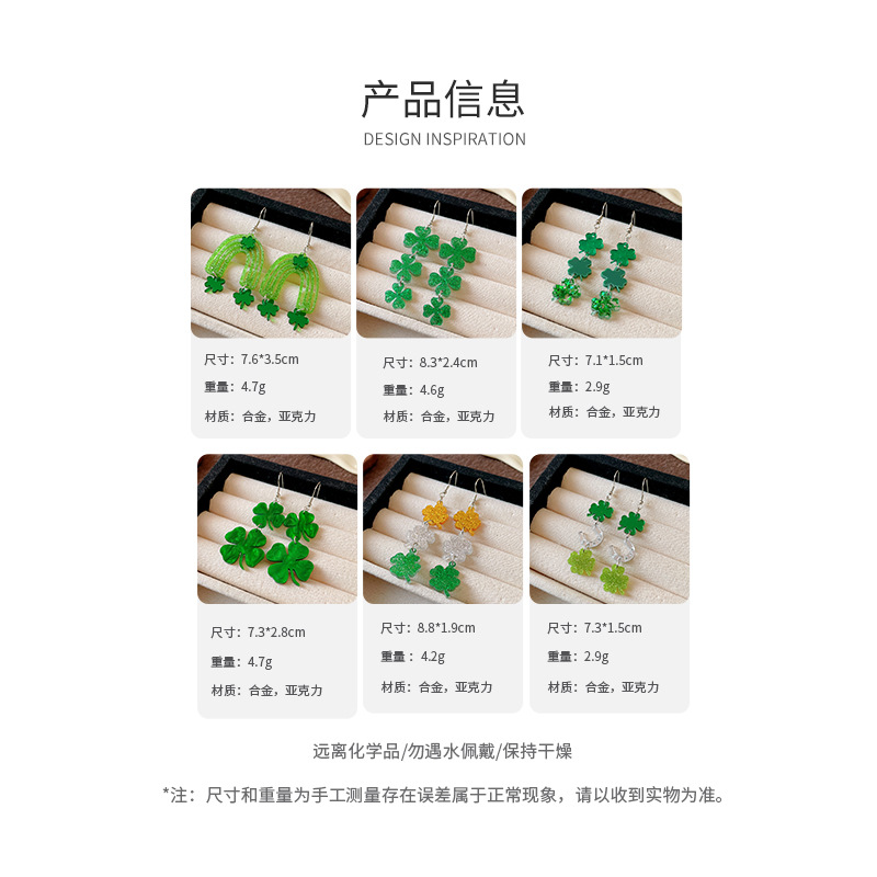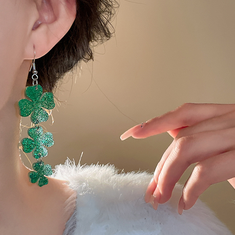 圣帕特里克节配饰耳环女四叶花帽子耳钩马蹄流苏派对耳饰首饰批发
