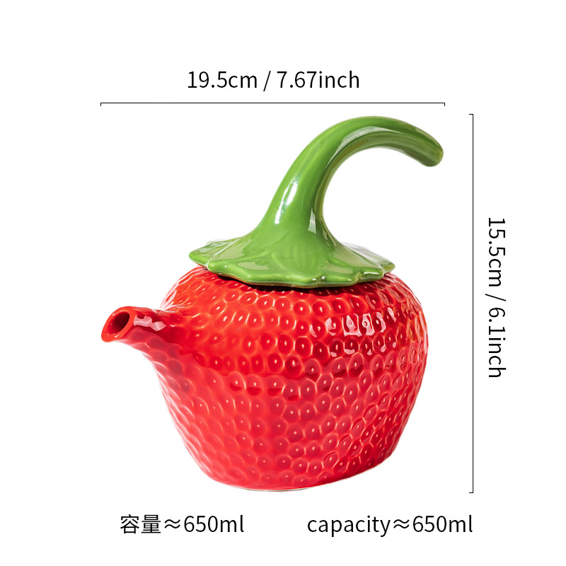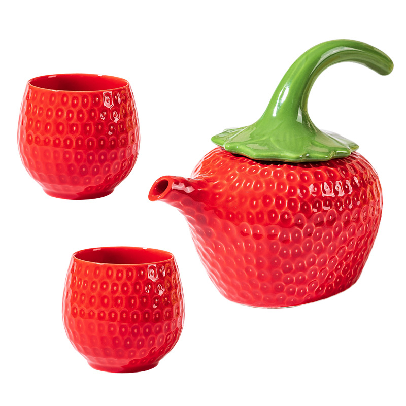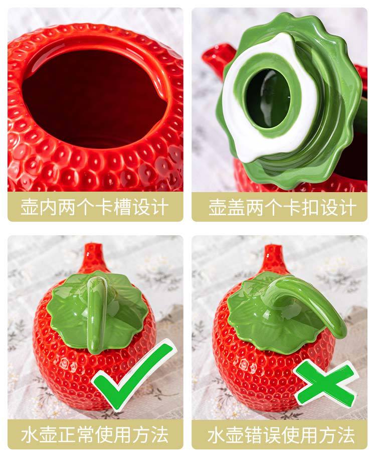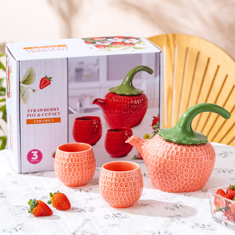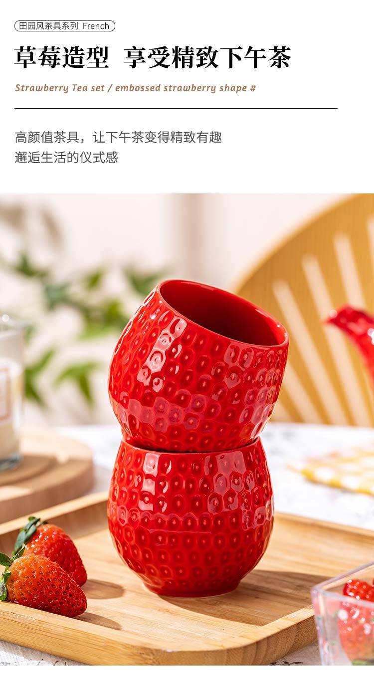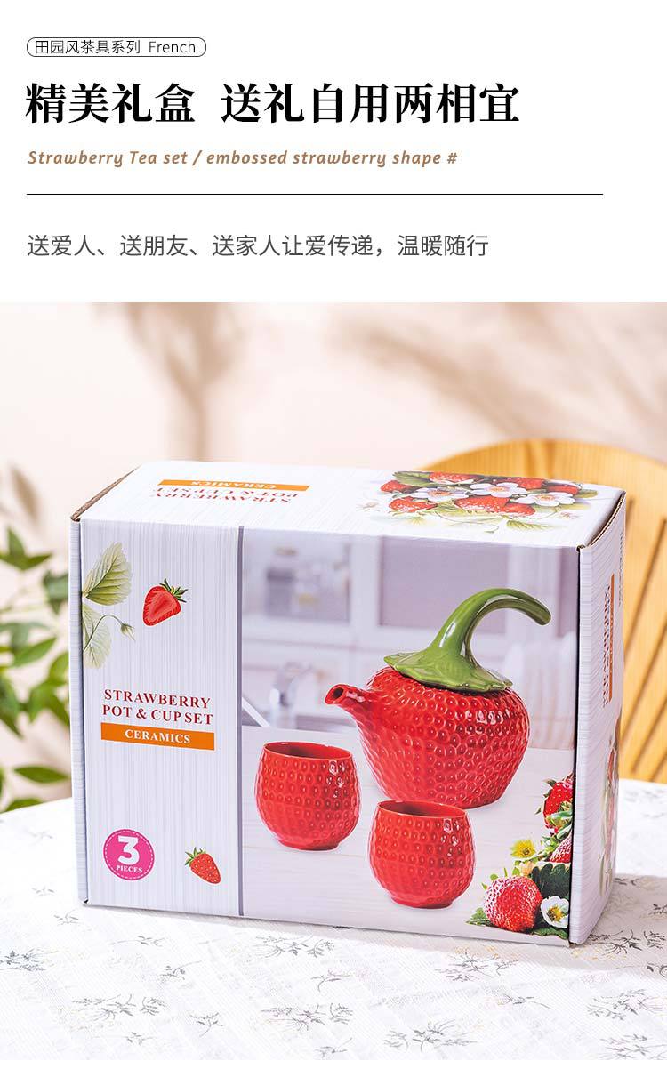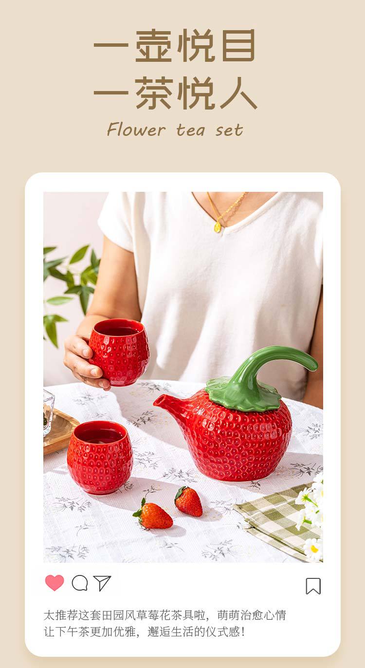 高温釉下彩茶壶套装田园风草莓下午茶茶具水杯露营派对水壶带礼盒