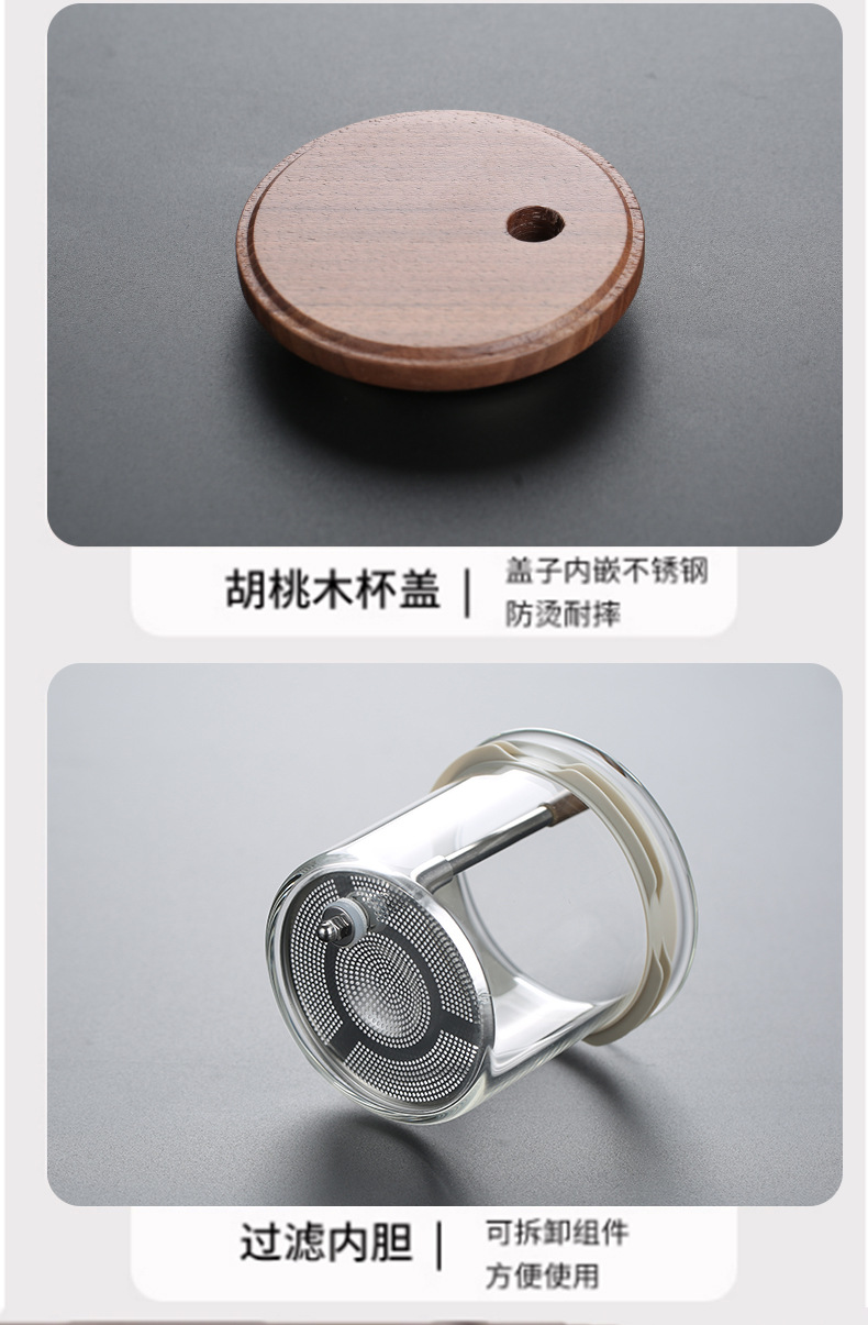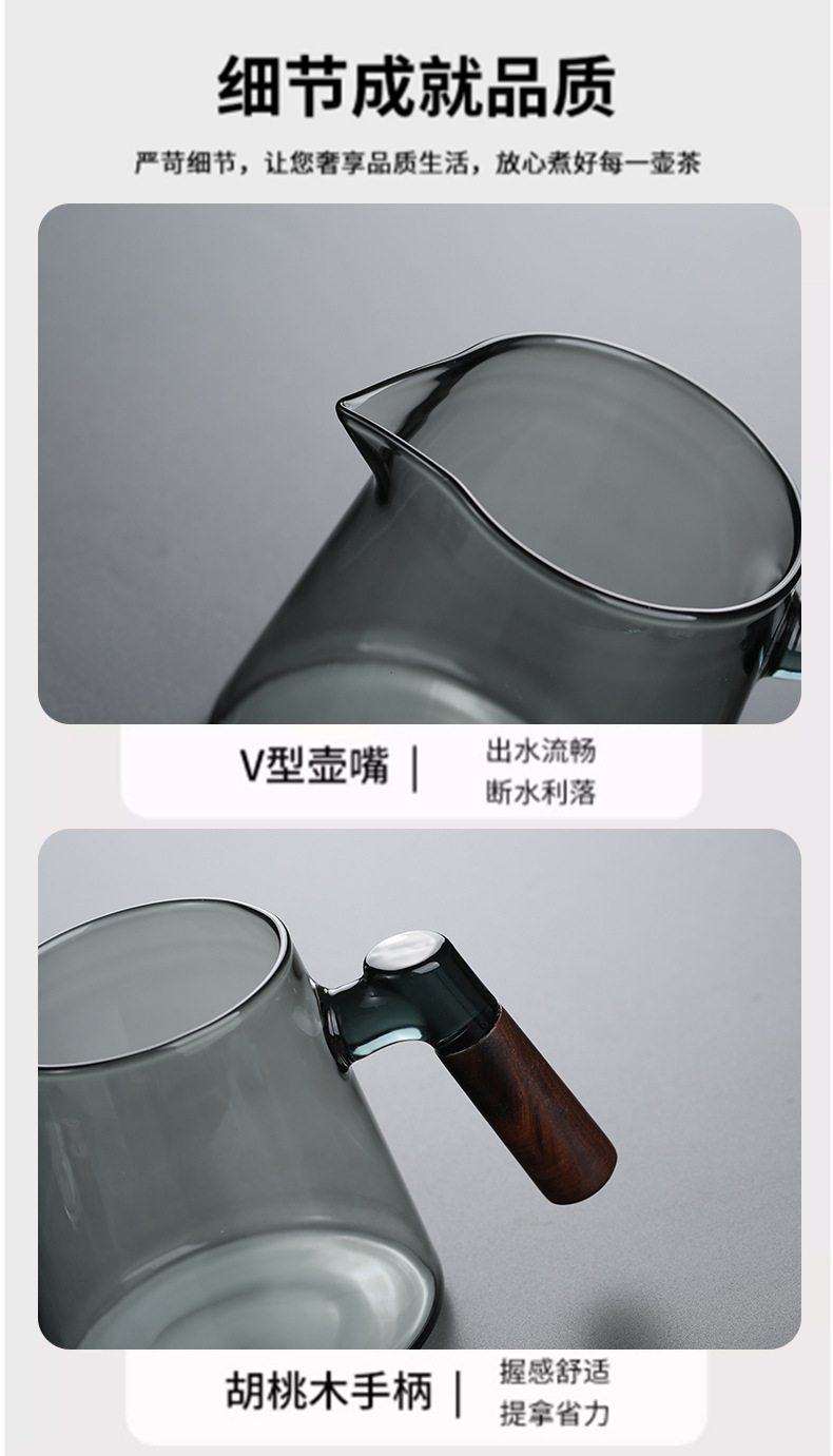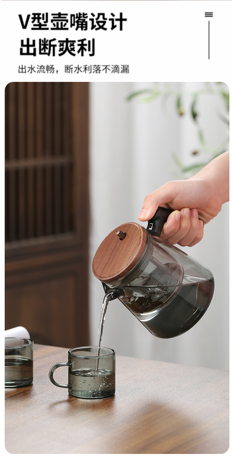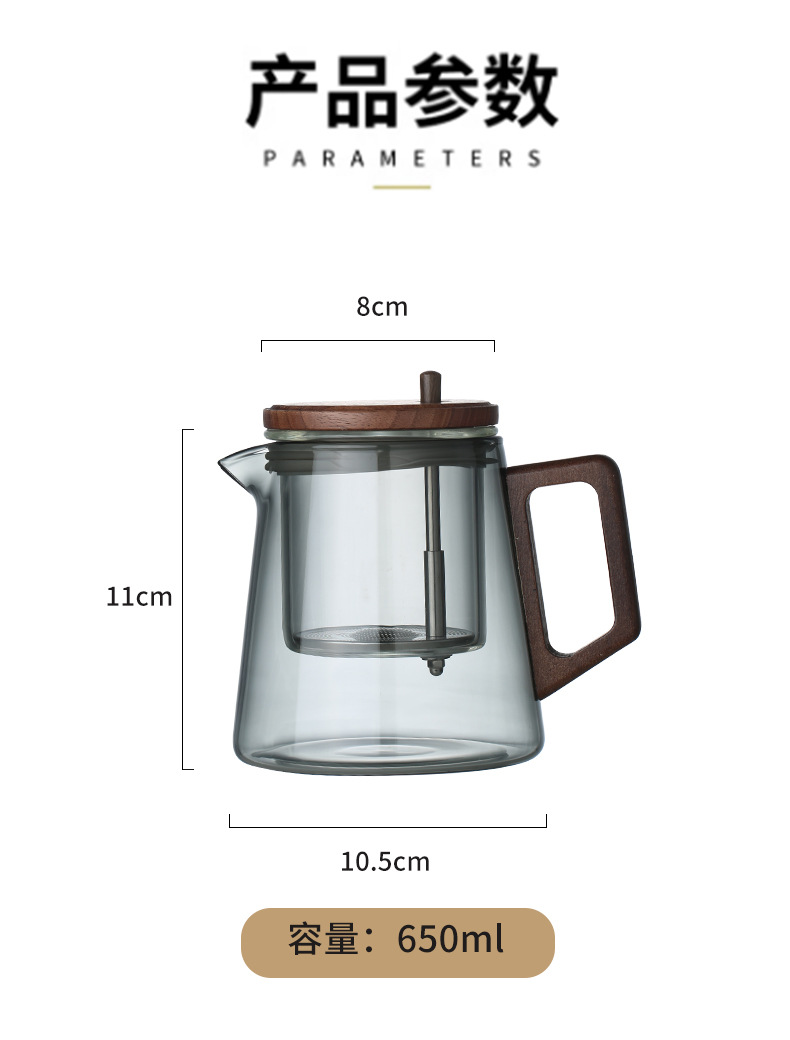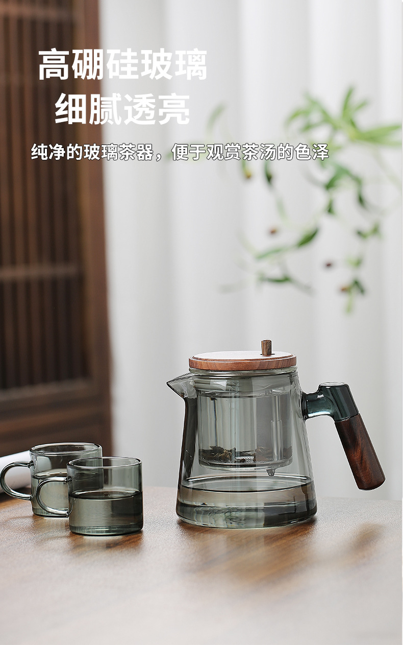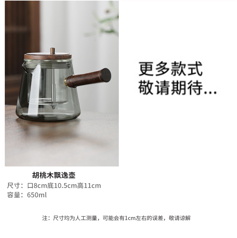 新款泡茶壶家用耐热玻璃内胆飘逸杯茶水分离泡茶壶胡桃木把手加厚