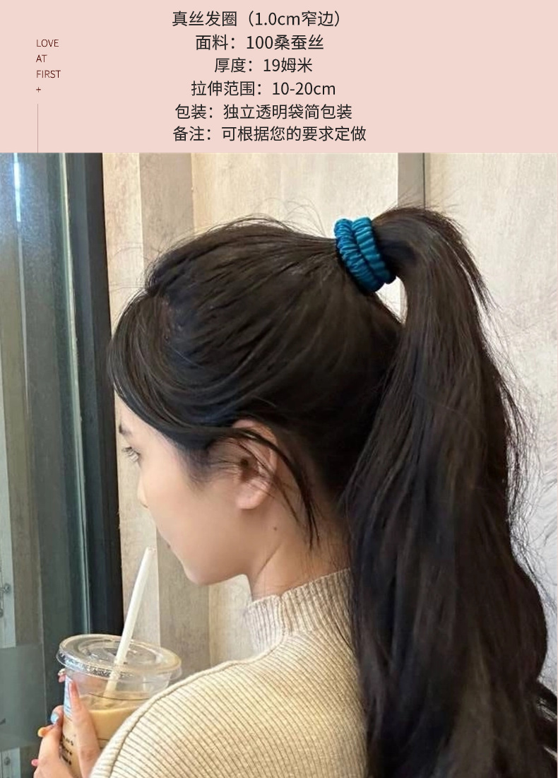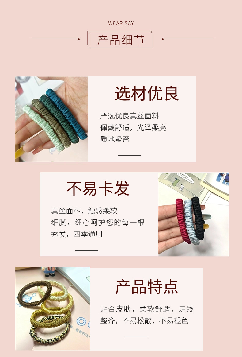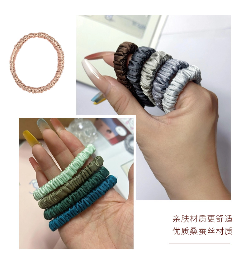 19姆米真丝细发圈桑蚕丝牛津松紧发圈多色不伤发不留痕发带