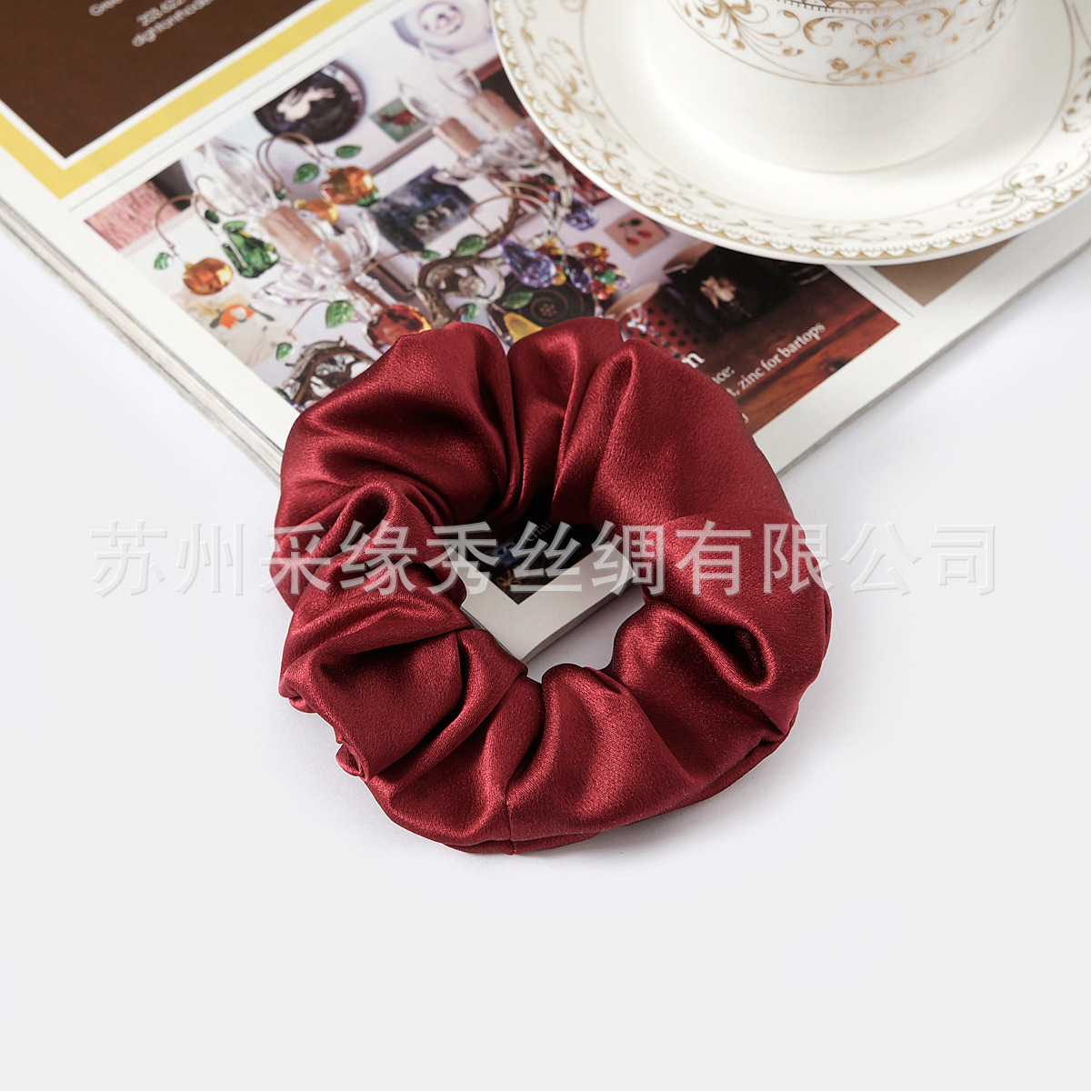 跨境法式复古饰品马尾盘发素绉缎头花发绳 100桑蚕丝真丝大肠发圈