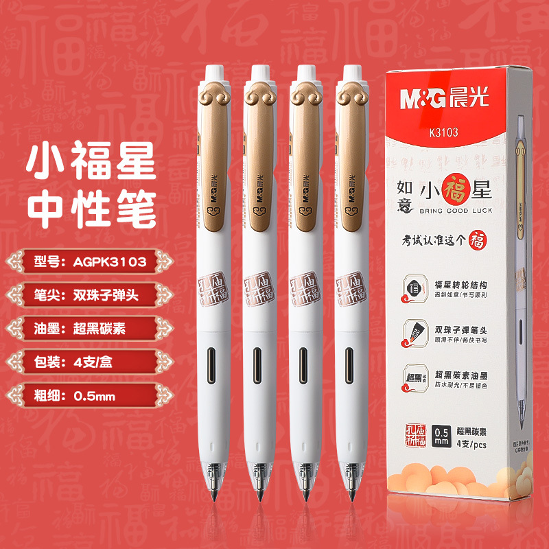 晨光故宫文化k35限定按动式中性笔0.5黑色刷题笔考试笔套装K35X4