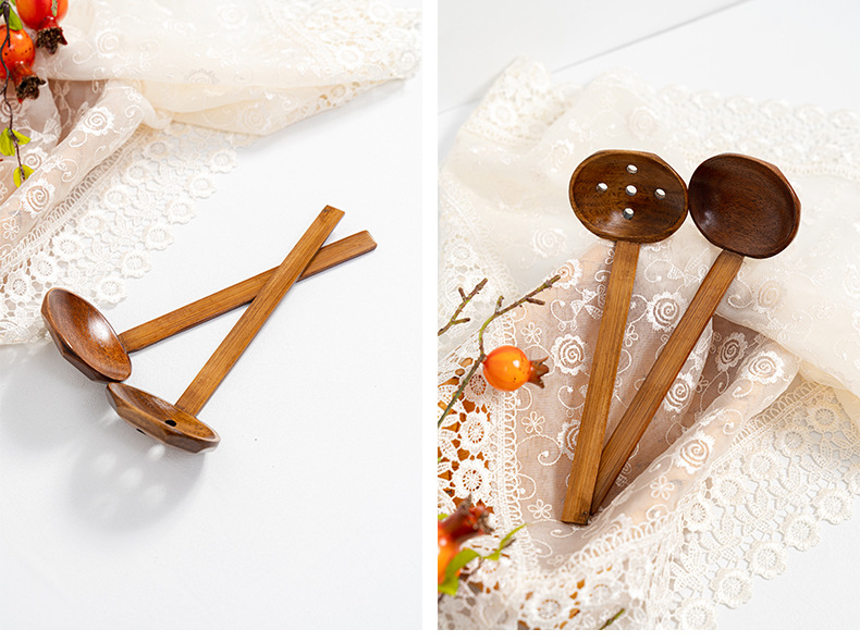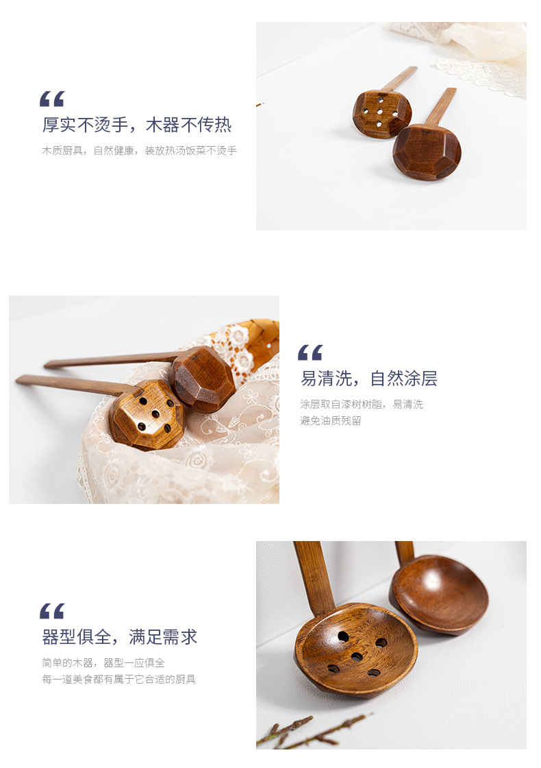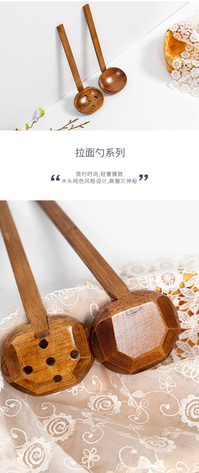 楠木老漆木质拉面勺日式味千八角龟甲勺火锅勺麻辣烫勺捞面勺漏勺