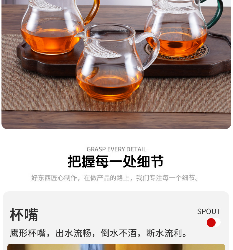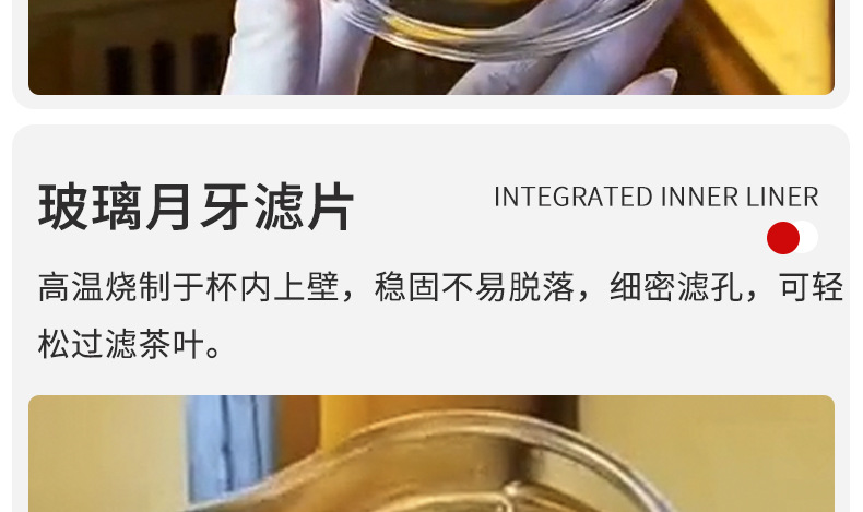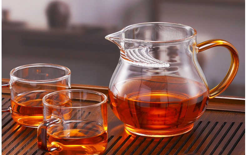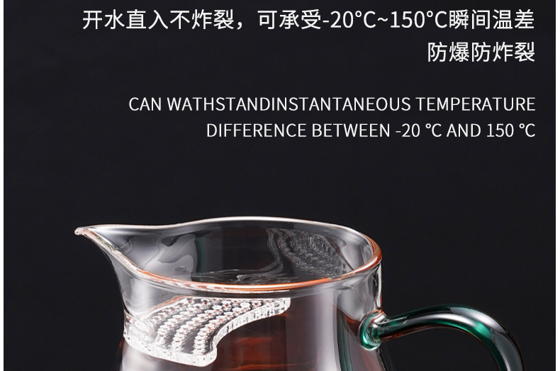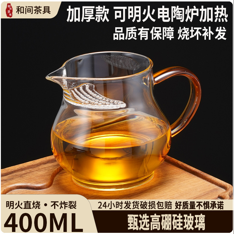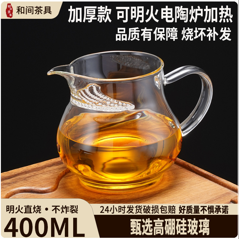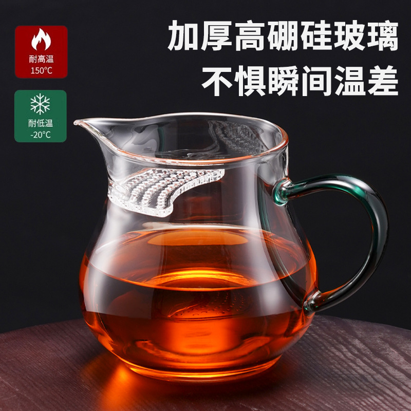 加厚高硼硅玻璃月牙公道杯一体公道杯过滤分茶器可明火加热查漏