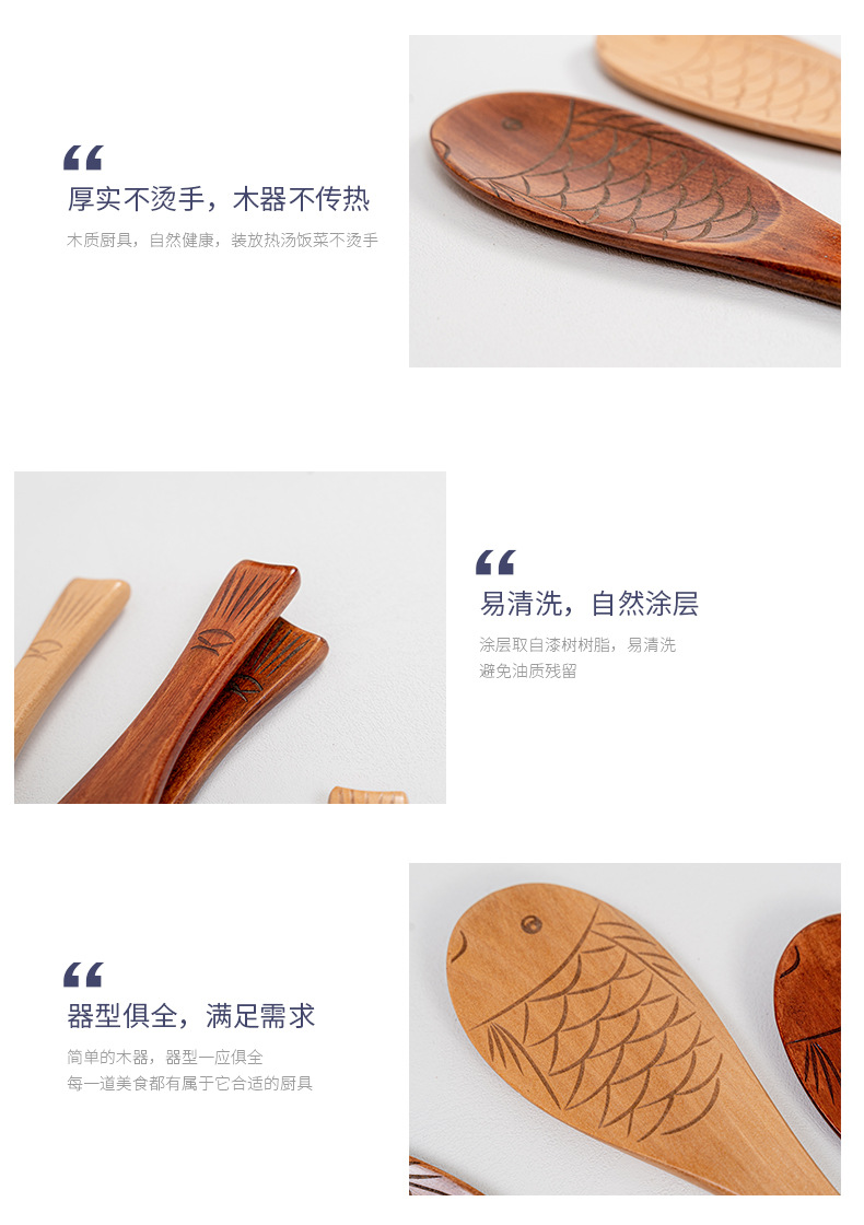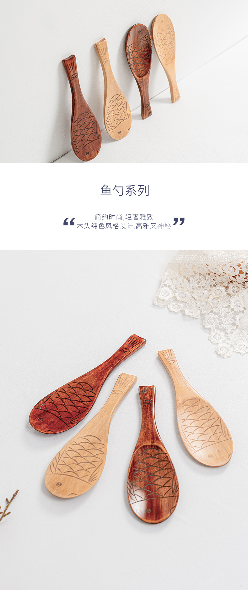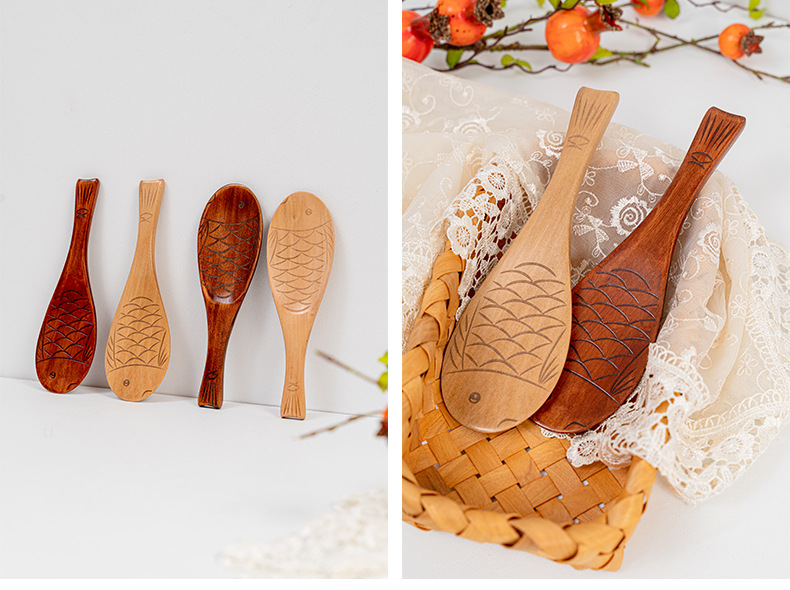 日式网红鱼形饭勺子木质盛饭勺干饭勺家用餐具米饭铲子厂家批发