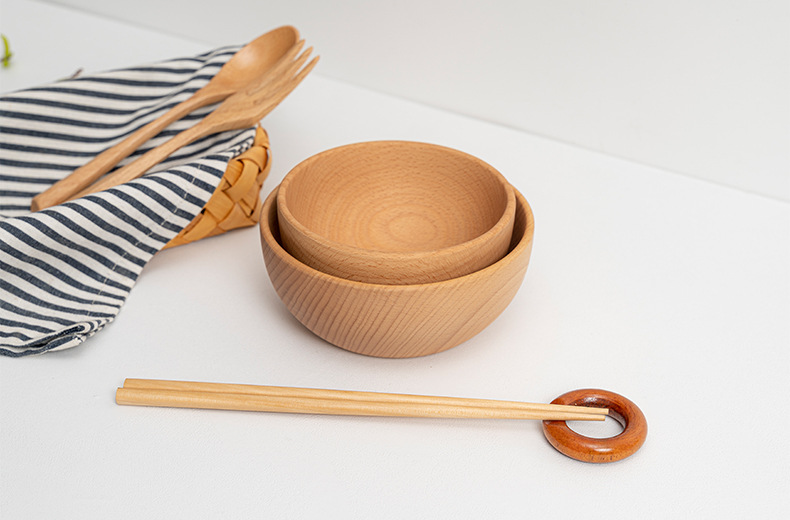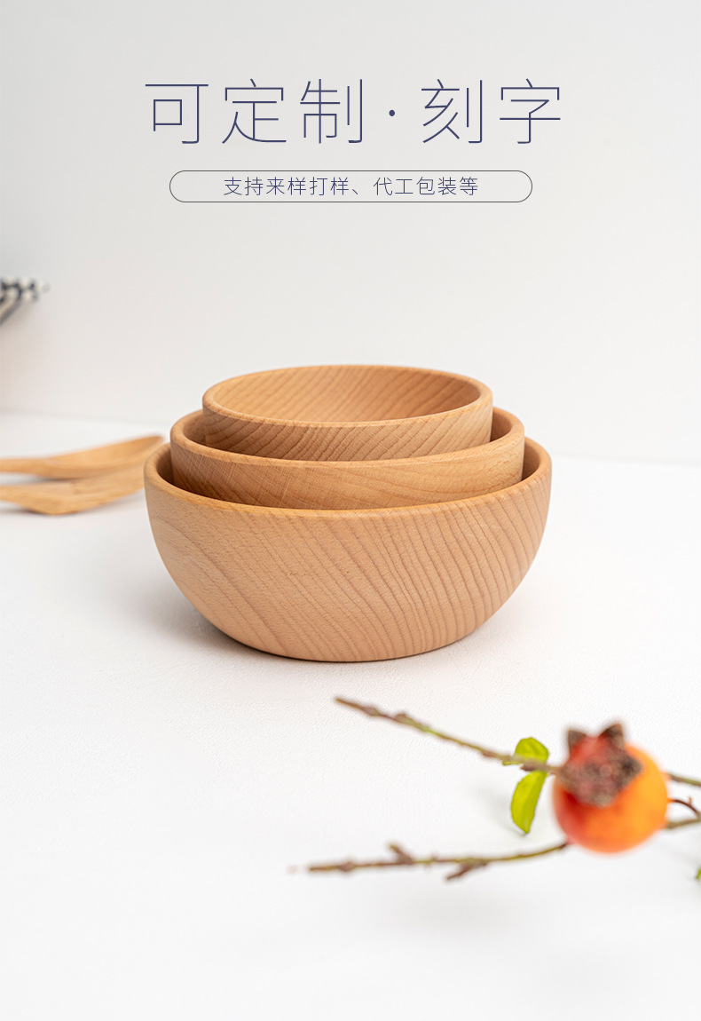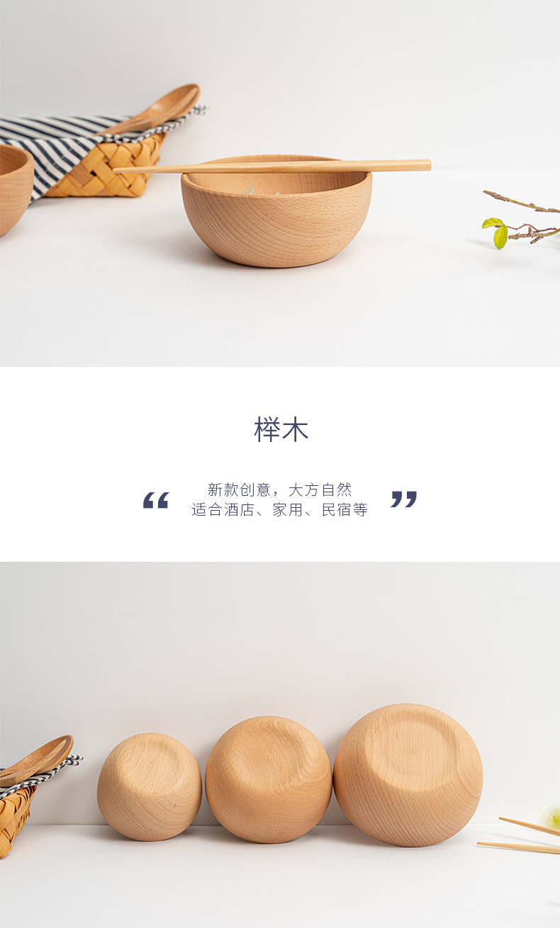 日式木碗榉木木质饭碗木制沙拉碗家用儿童餐具碗泡面拉面碗厂家批
