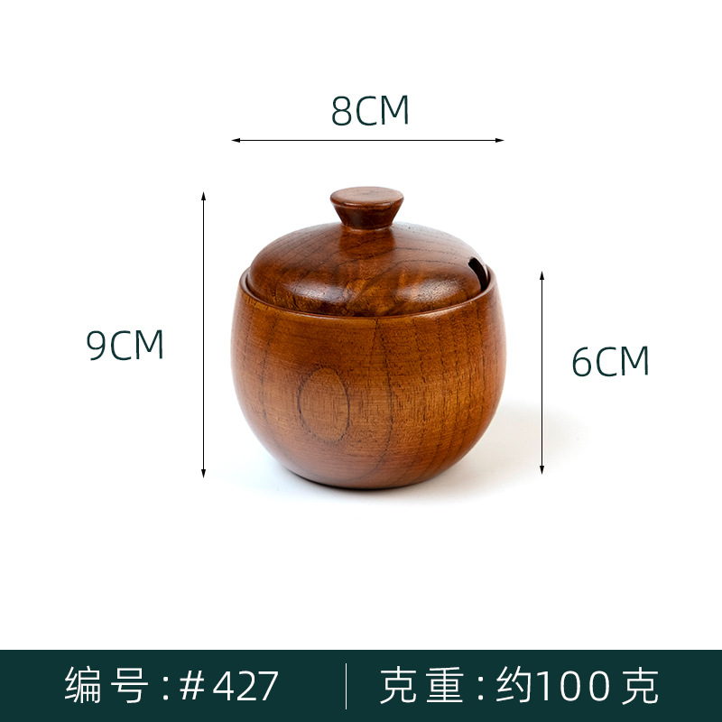 日式复古木制调料罐酸枣木调味盒实木带盖家用厨房盐罐厂家批发