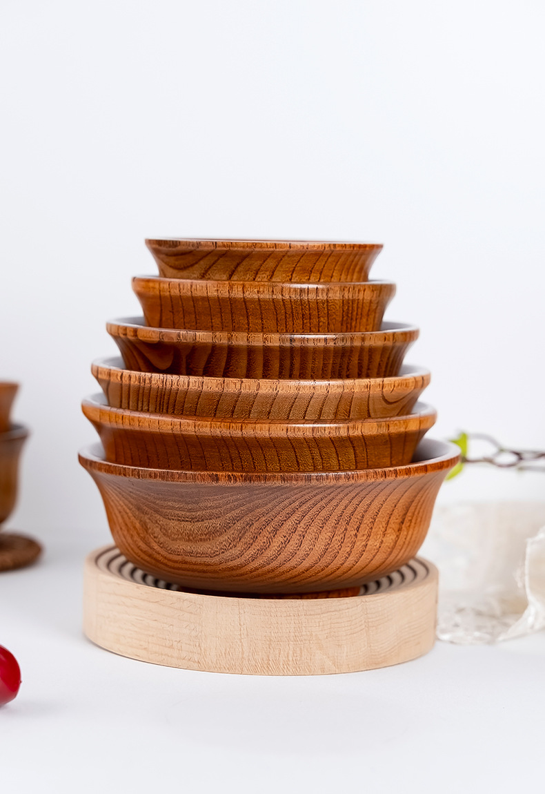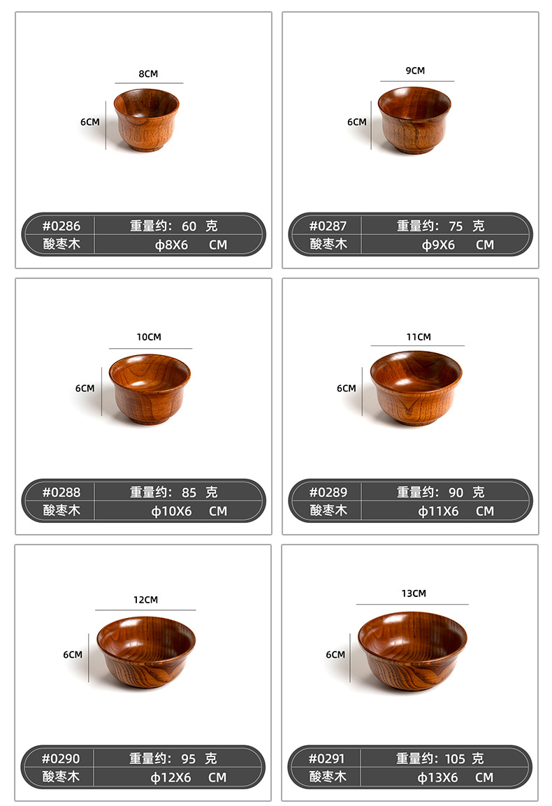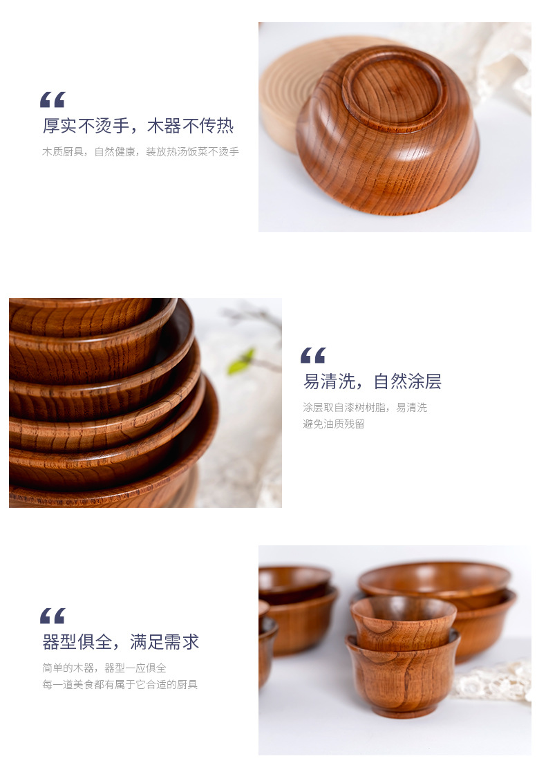 日式酸枣木木碗拉萨返边木碗奶茶碗家用餐具成人碗儿童饭碗沙拉碗