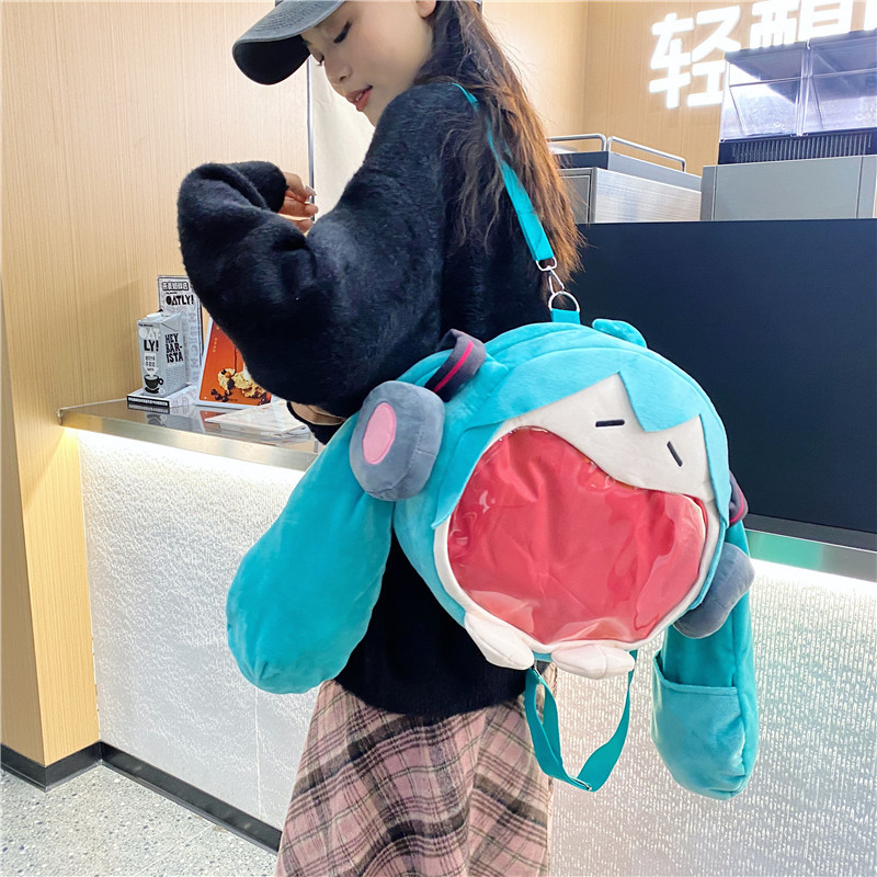 日系新款初音未来miku双肩痛包卡通可爱毛绒jk洛丽塔玩偶学生书包