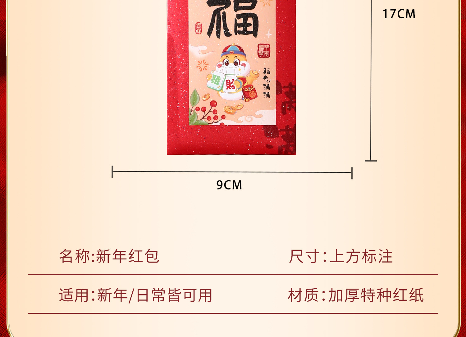 | 蛇年新年红包【平铺2000元装】 | USD $0.85 | 59625 piece available |