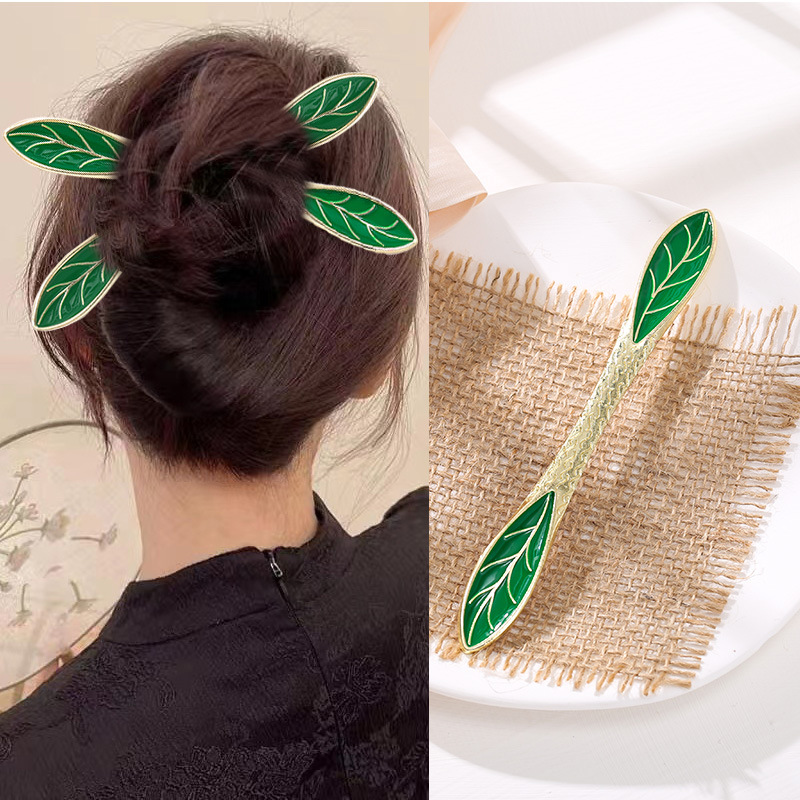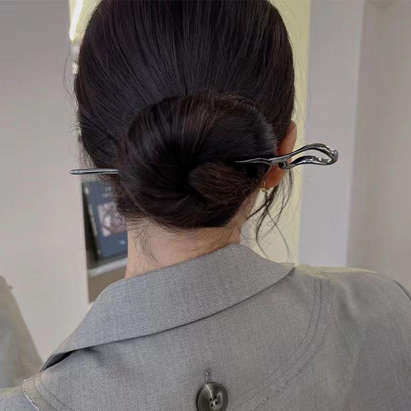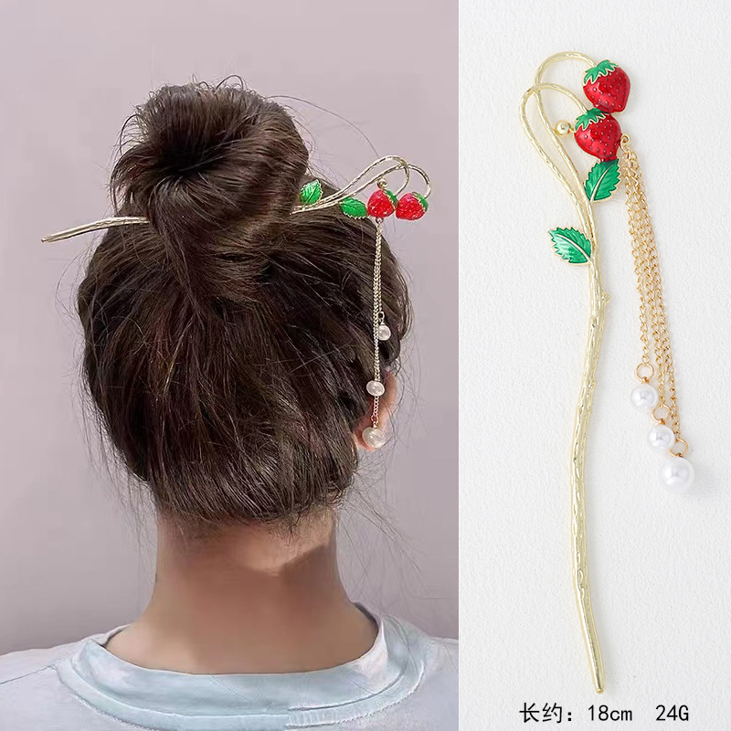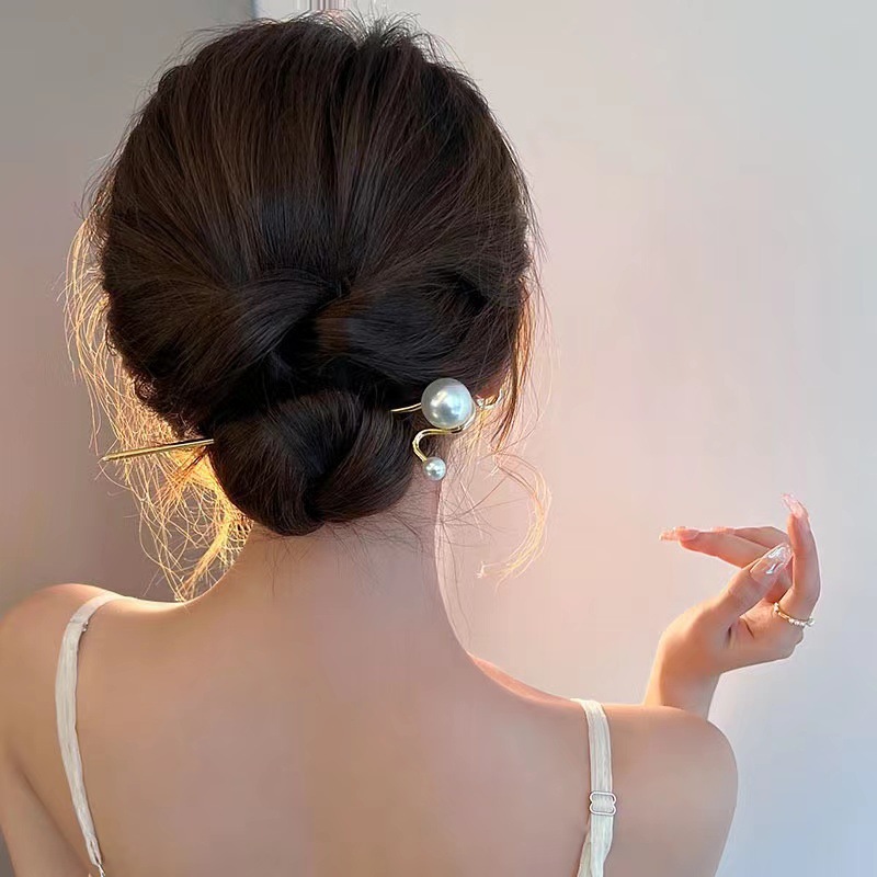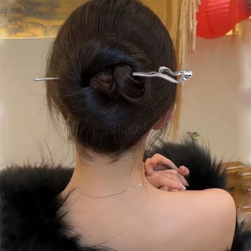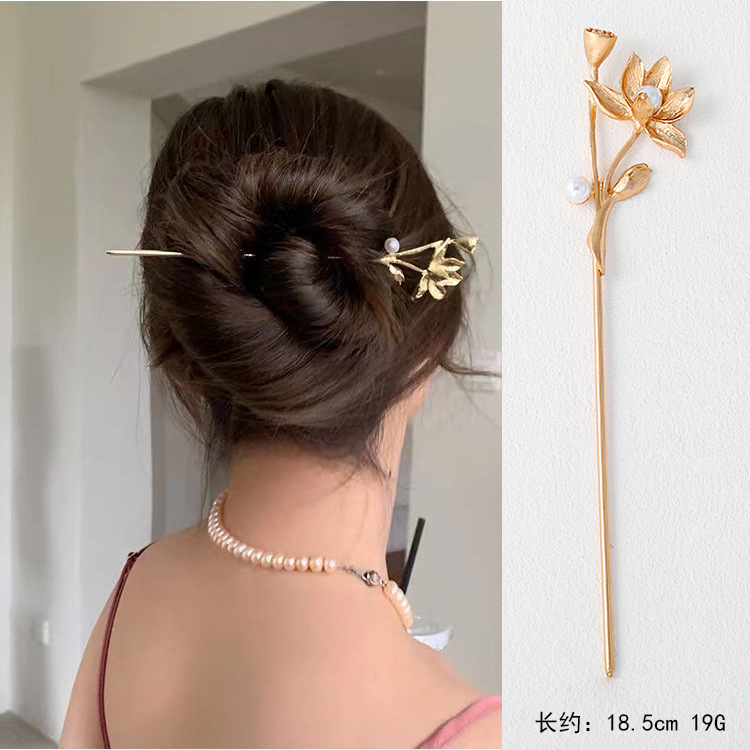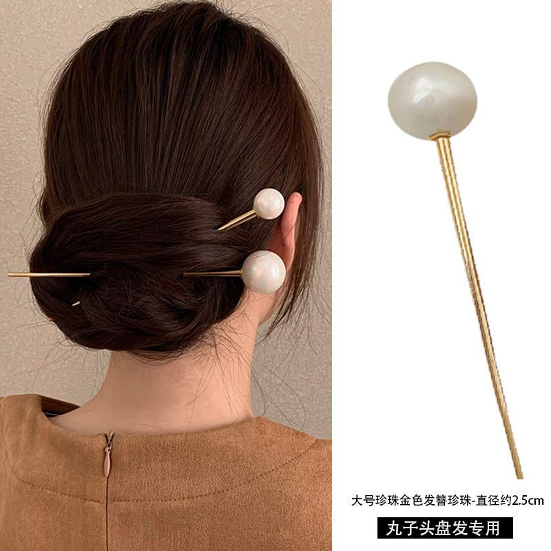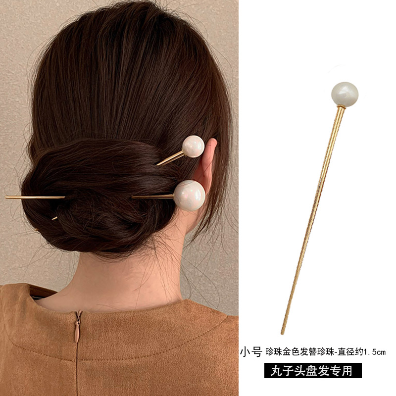 铃兰花流苏水钻鱼尾一字发簪圆球丸子头合金盘发簪子新中式发钗女