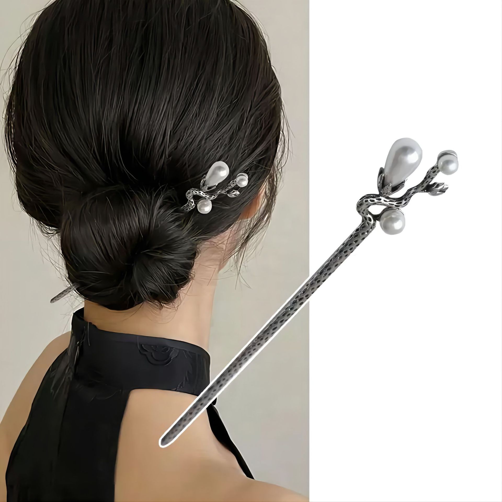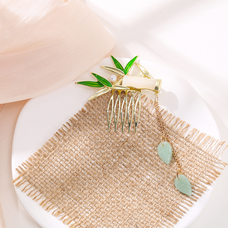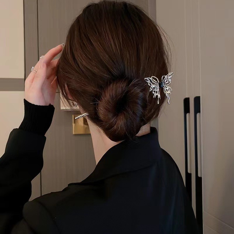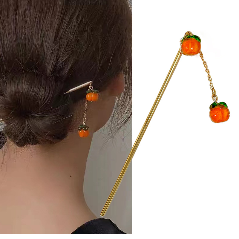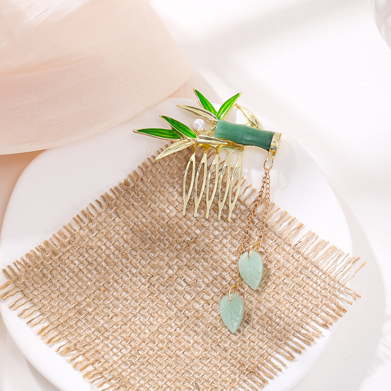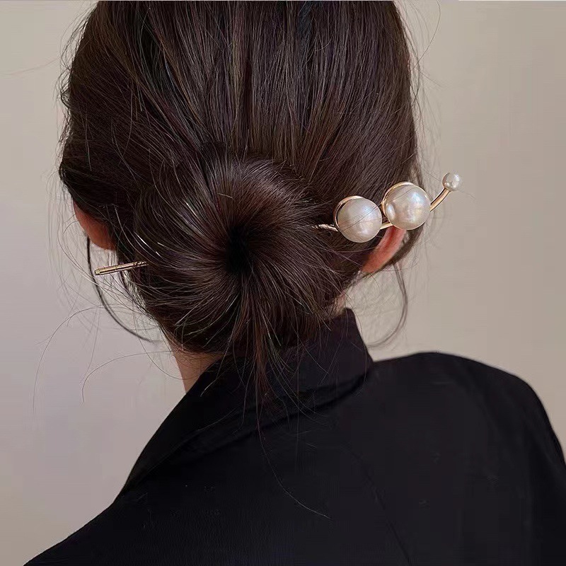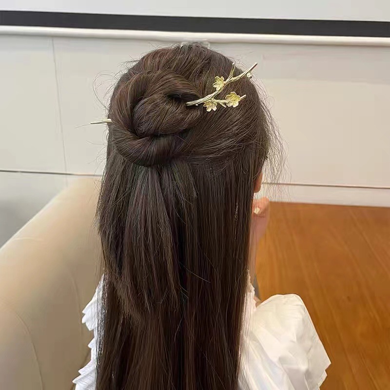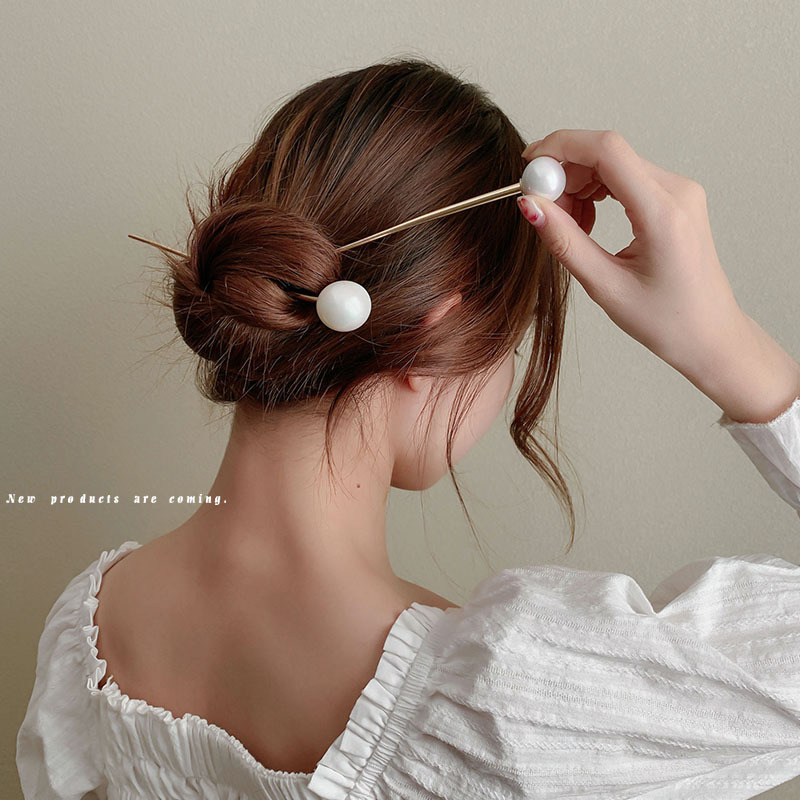 铃兰花流苏水钻鱼尾一字发簪圆球丸子头合金盘发簪子新中式发钗女