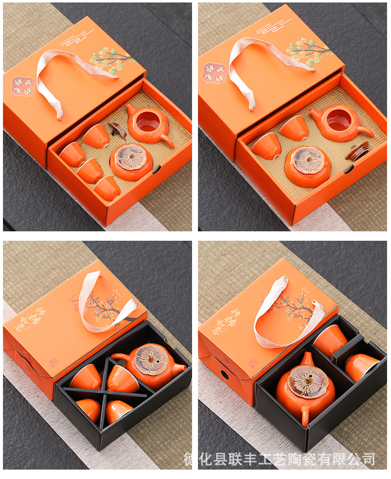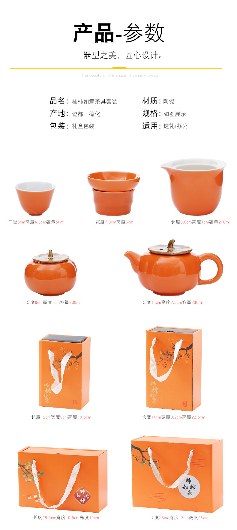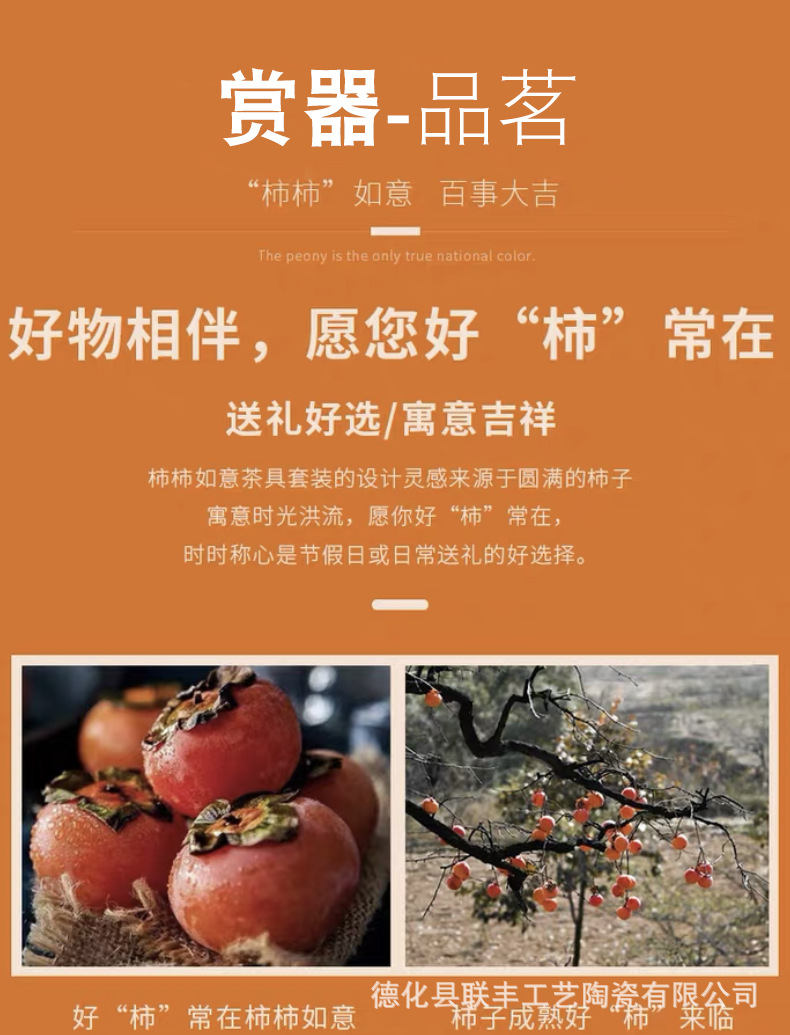 柿子柿柿如意陶瓷茶具套装商务活动4S店团建节日伴手礼品定印logo