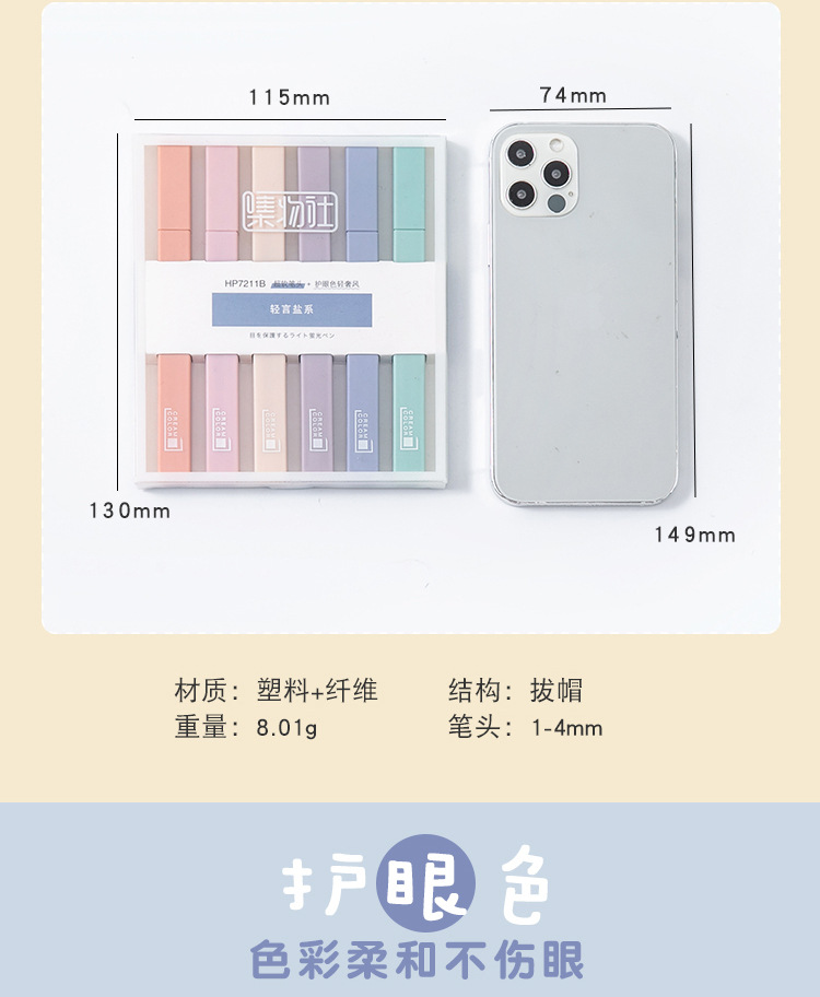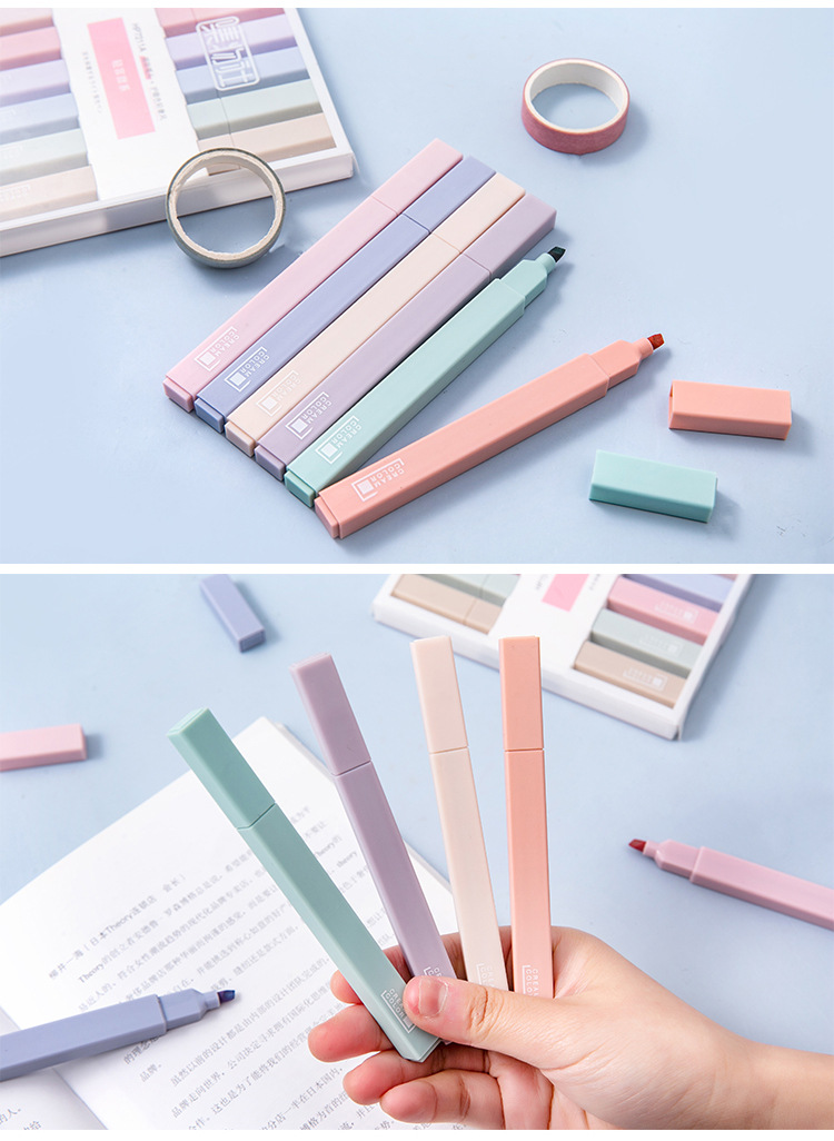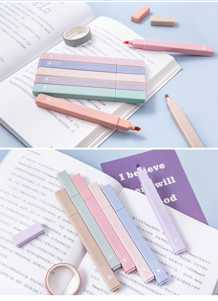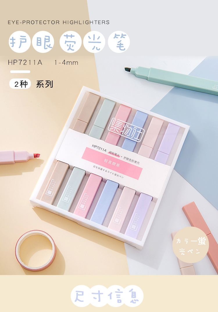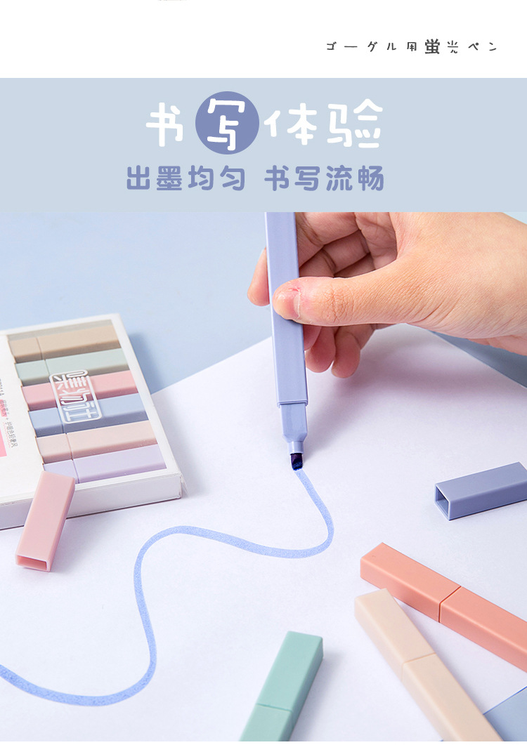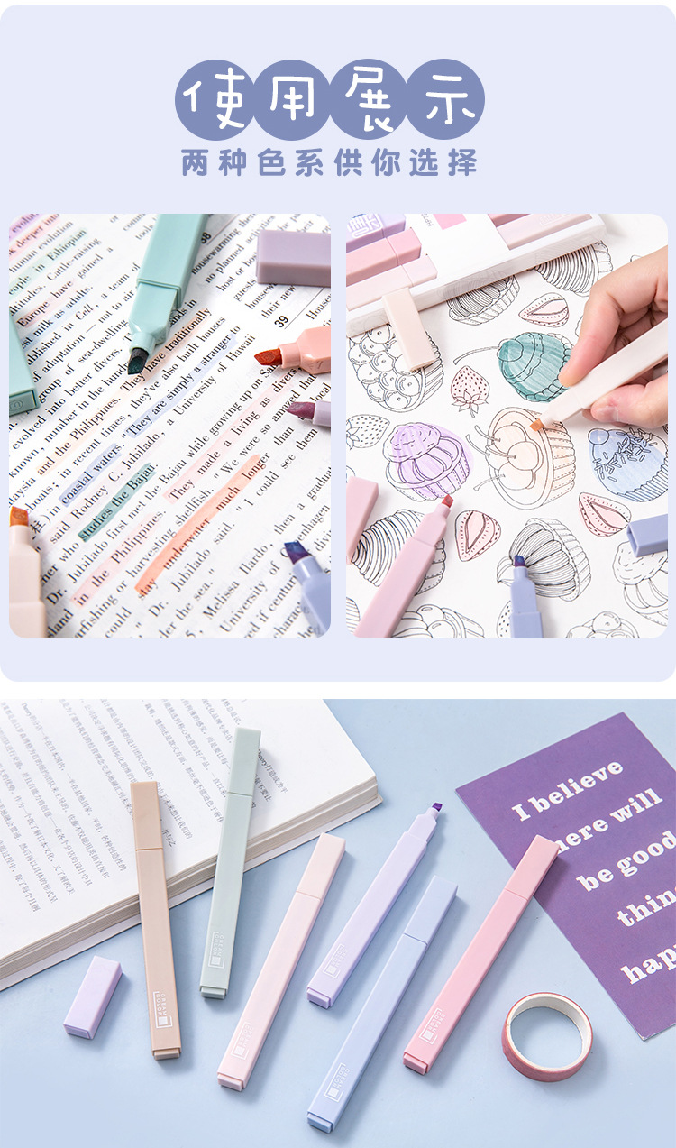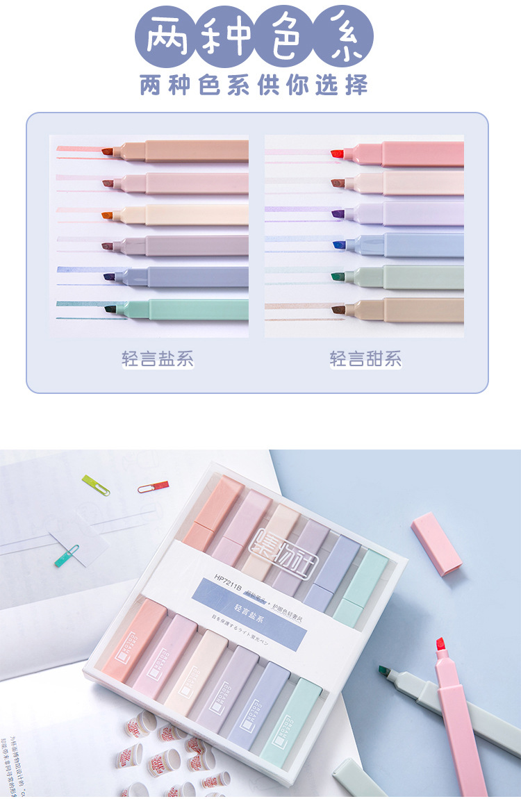 集物社软头荧光笔莫兰迪淡色标记笔大容量学生用彩色划重点记号笔