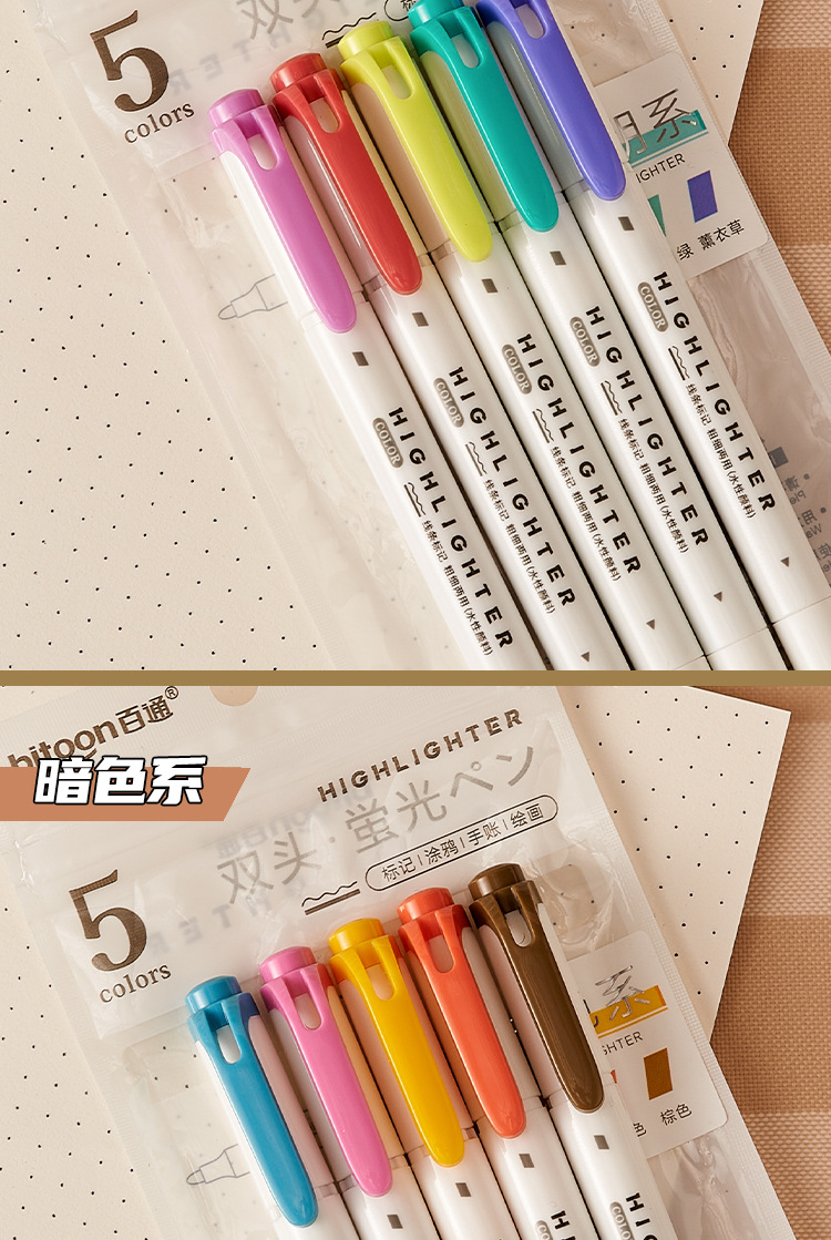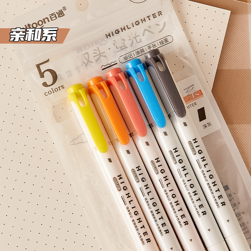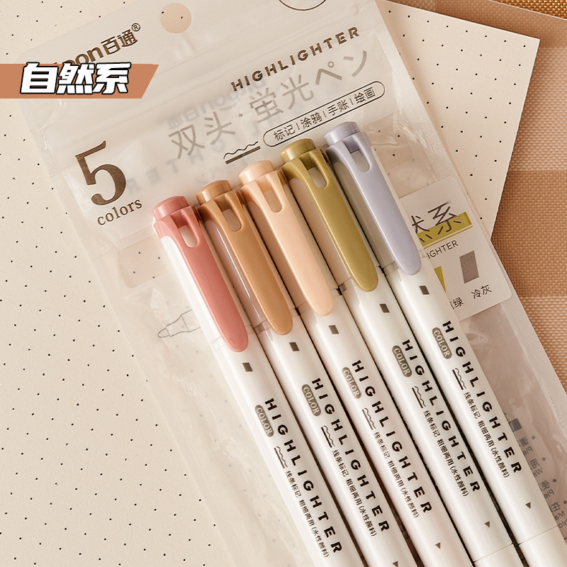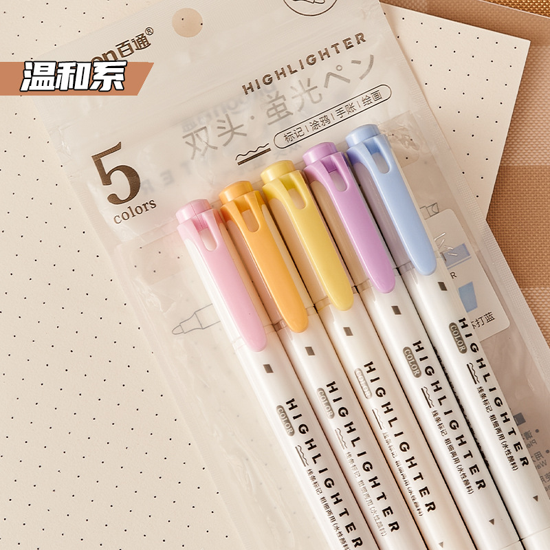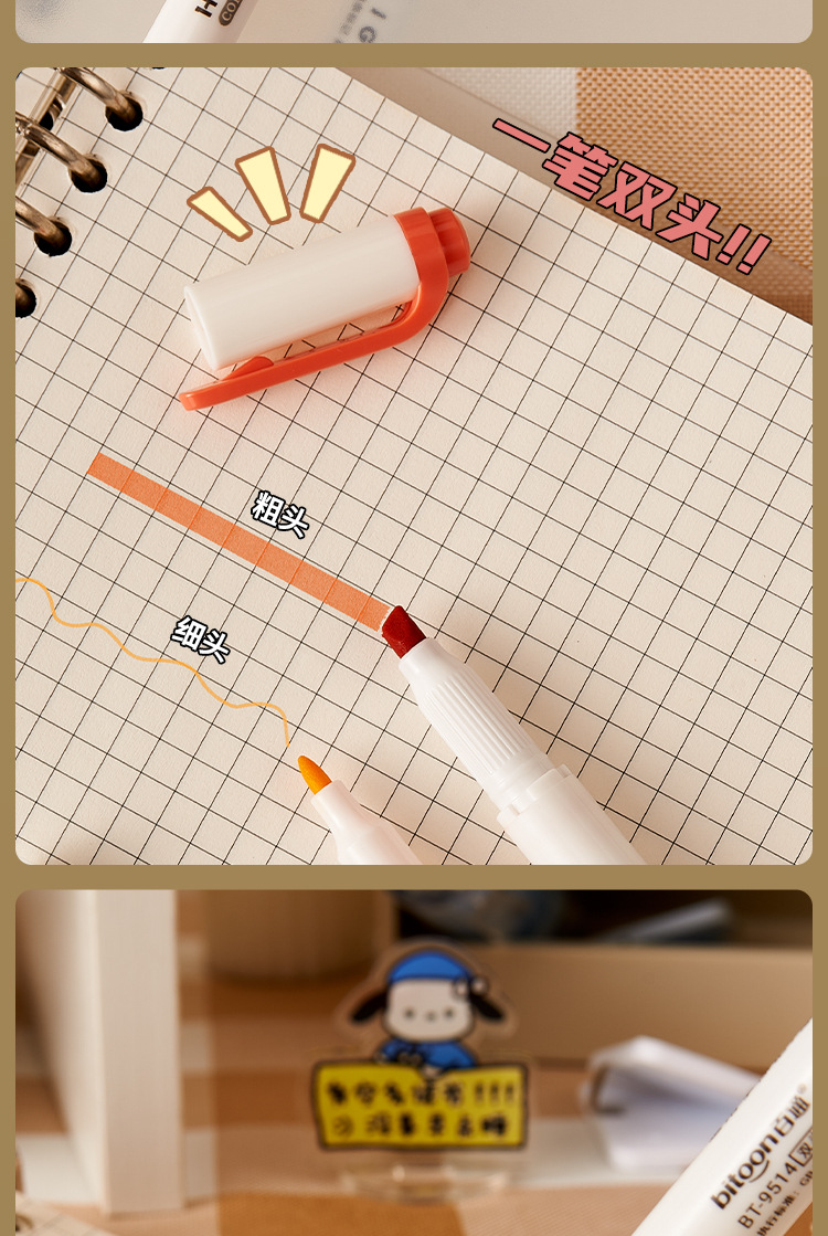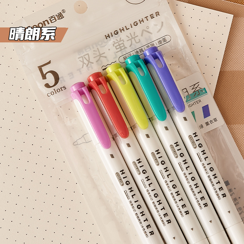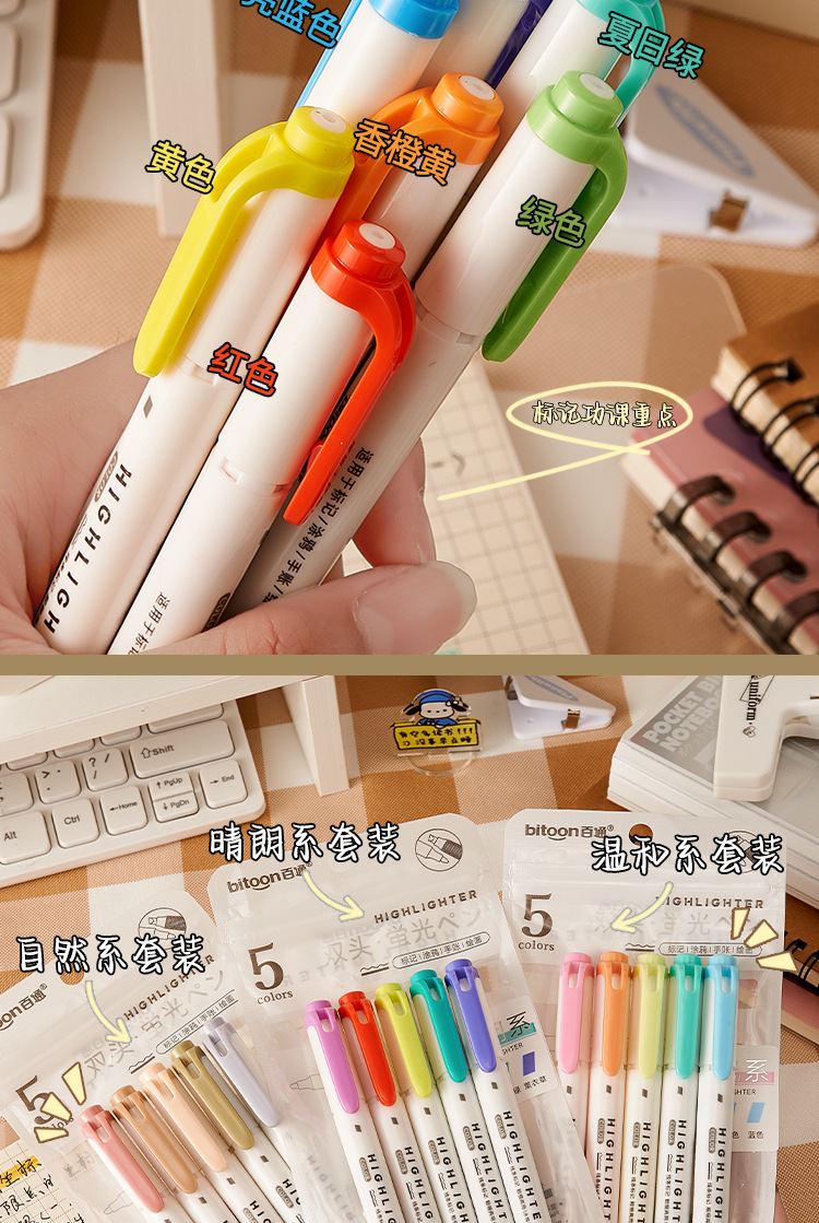 百通9514双头斑马同款荧光笔划重点高颜值学生标记
