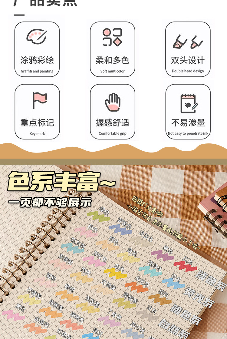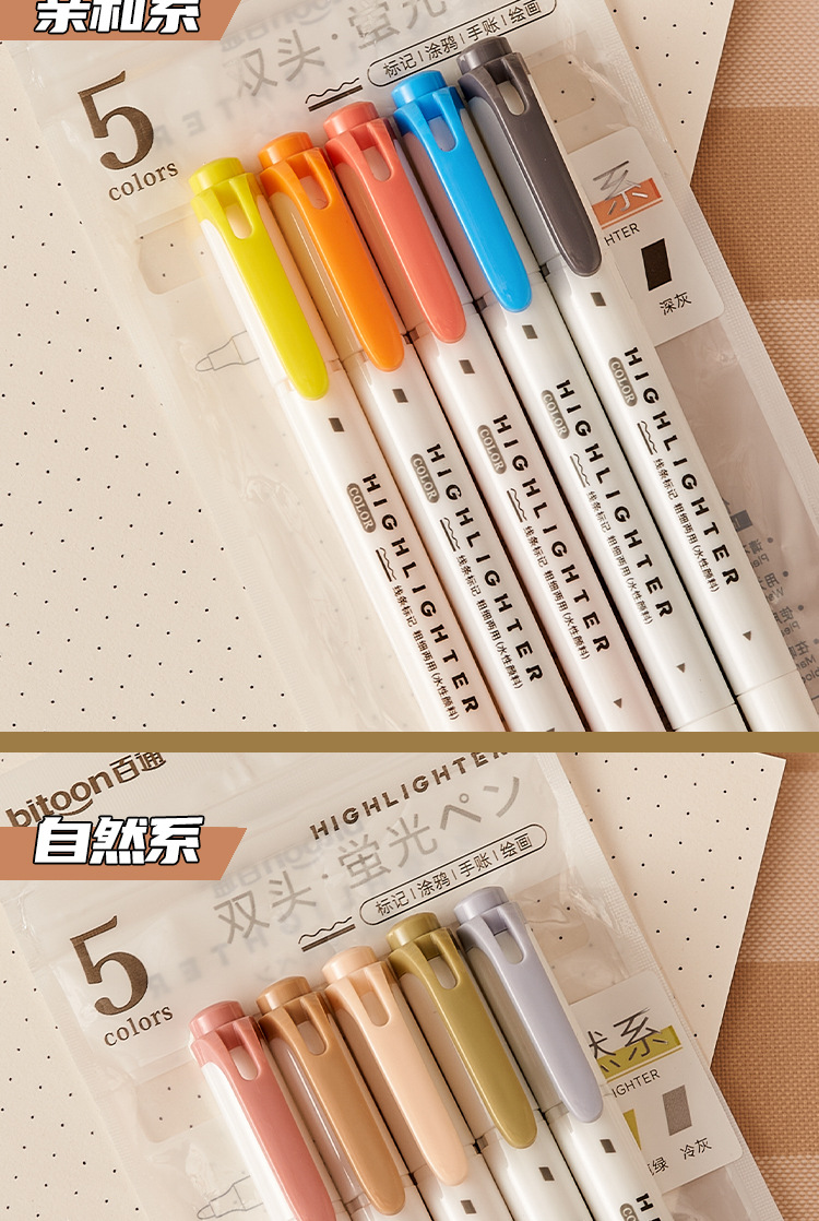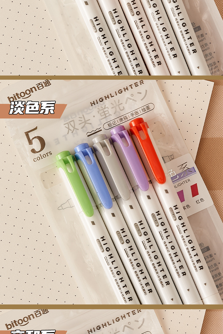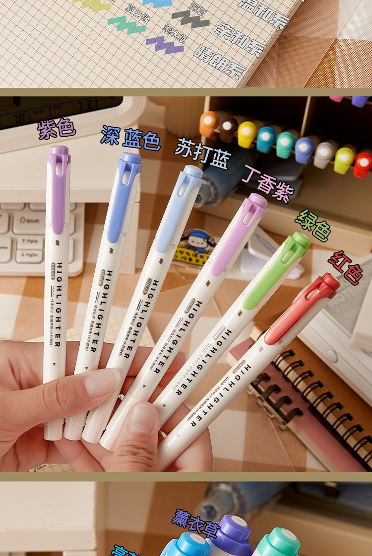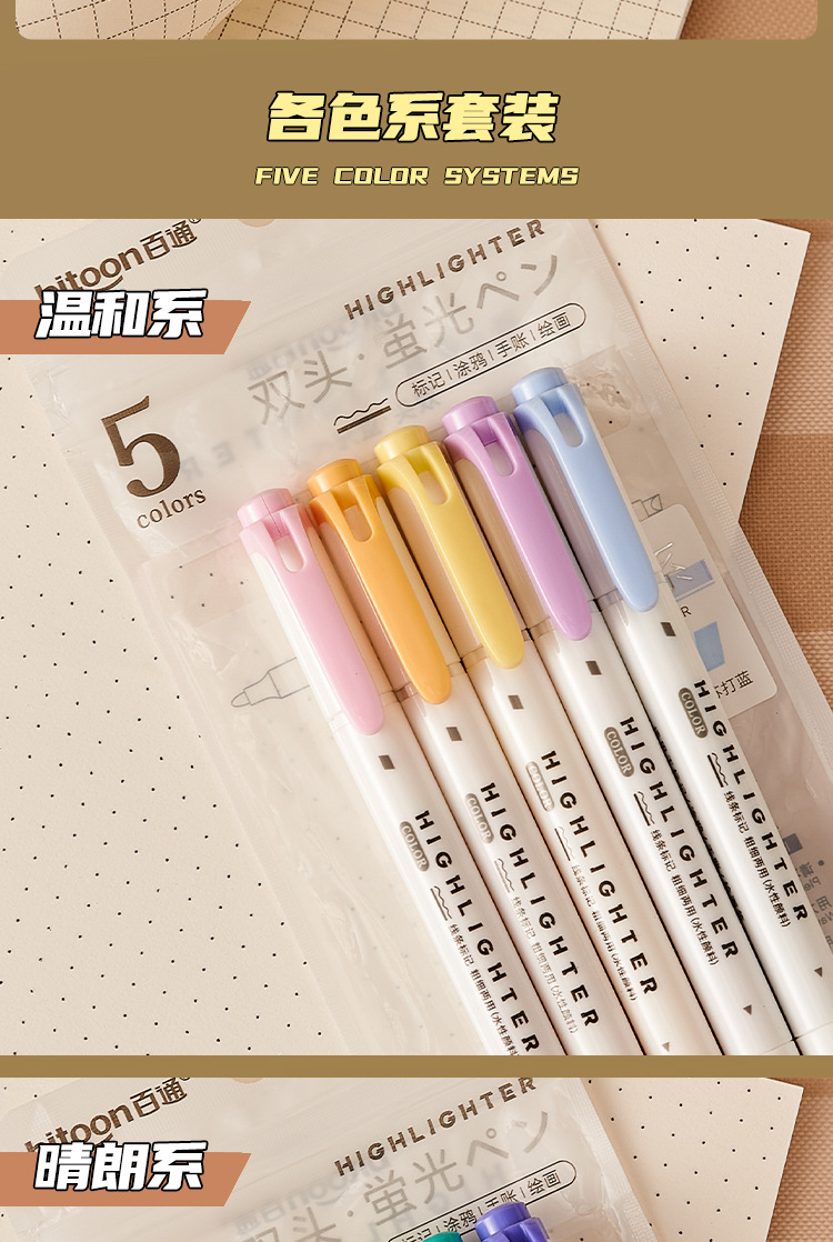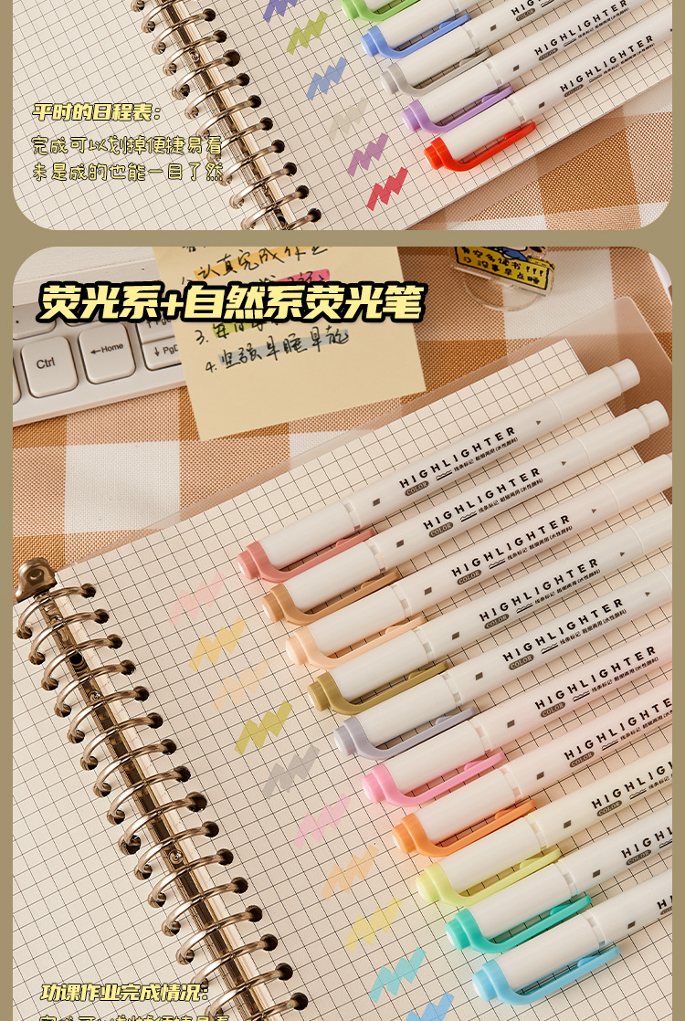 百通9514双头斑马同款荧光笔划重点高颜值学生标记