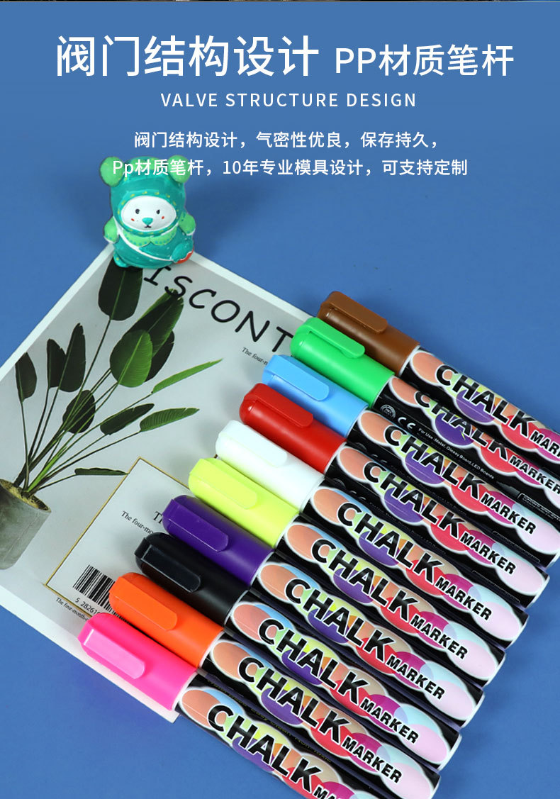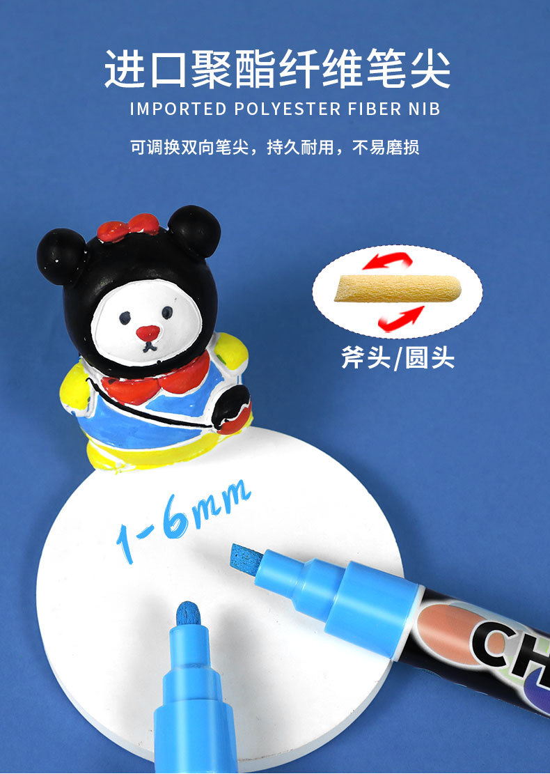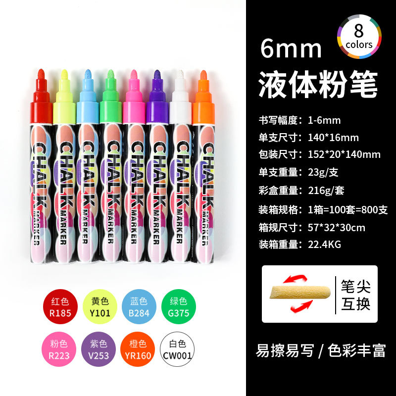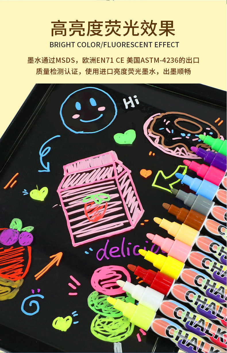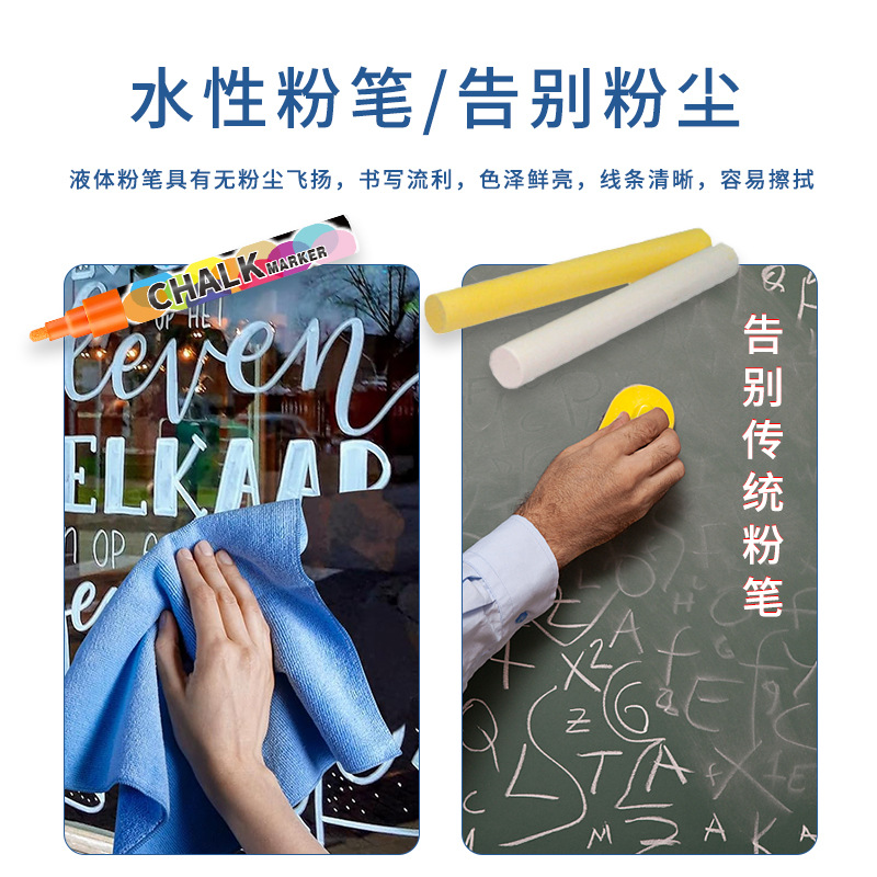 抖音爆款8色液体粉笔水溶无尘粉笔儿童涂鸦可擦标记黑板笔荧光笔