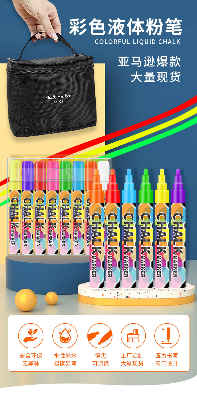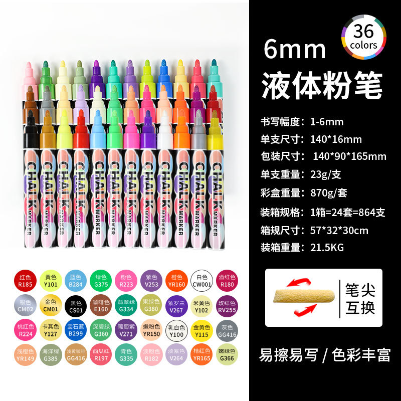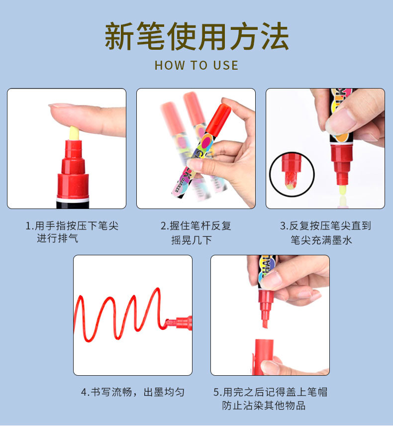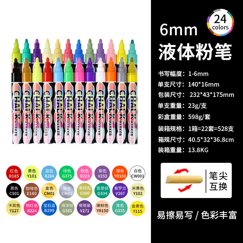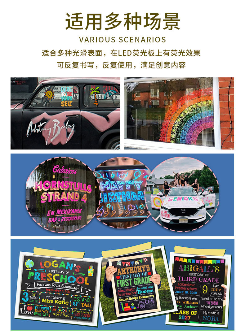 抖音爆款8色液体粉笔水溶无尘粉笔儿童涂鸦可擦标记黑板笔荧光笔