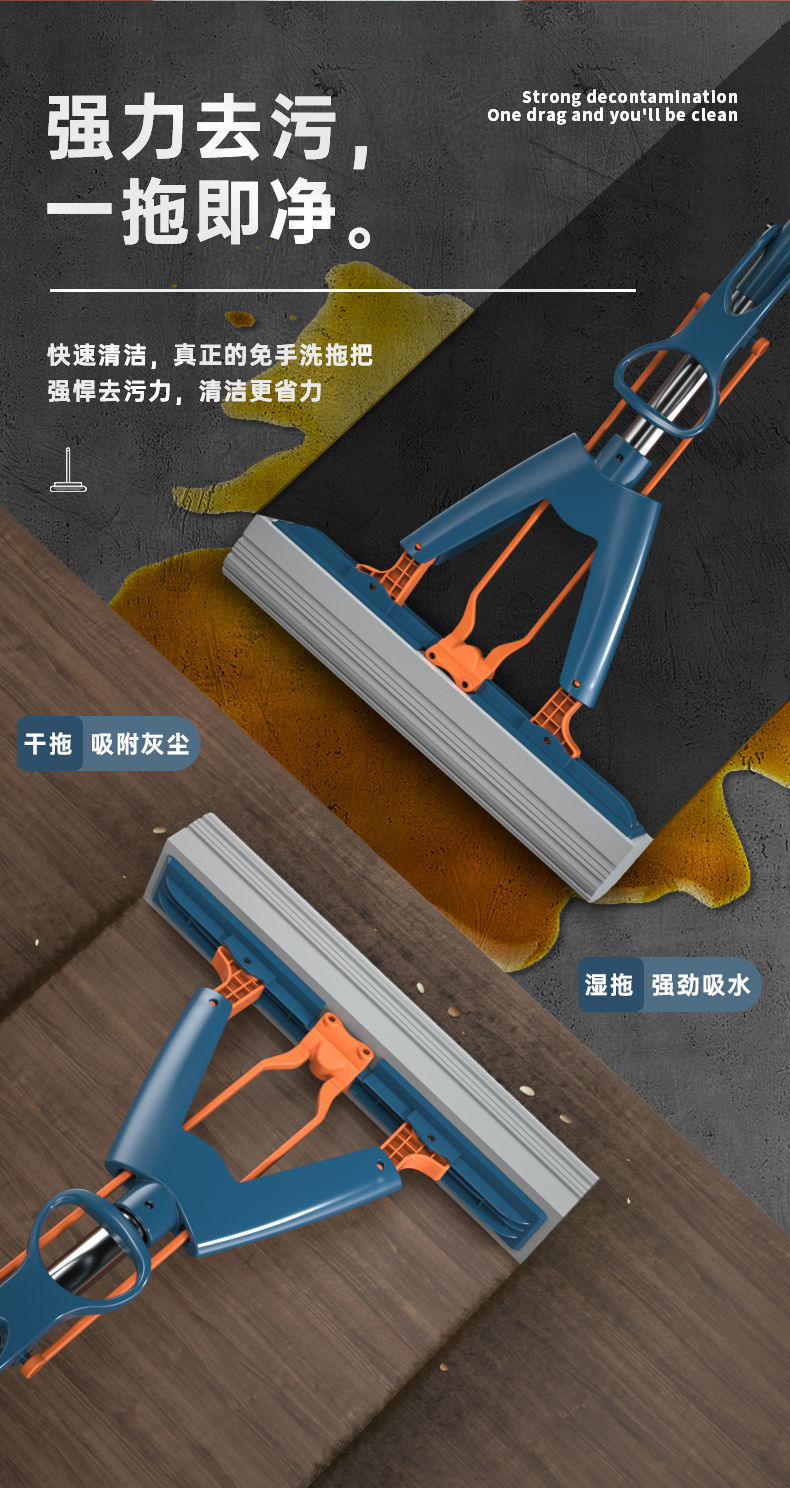 家用海绵拖把免手洗干湿两用对折式家用懒人大号吸水胶棉批发地拖
