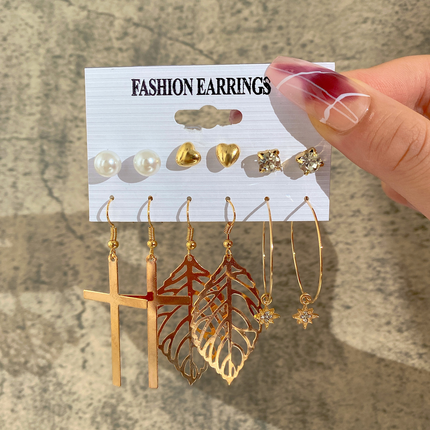 欧美跨境新款镶嵌珍珠女士耳环 创意法式复古金色耳圈套装6件套