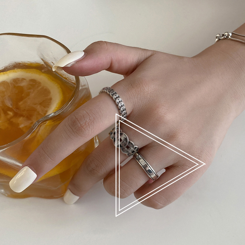做旧指环嘻哈风创意个性复古戒指女生不掉色潮朋克风链条泰银配饰
