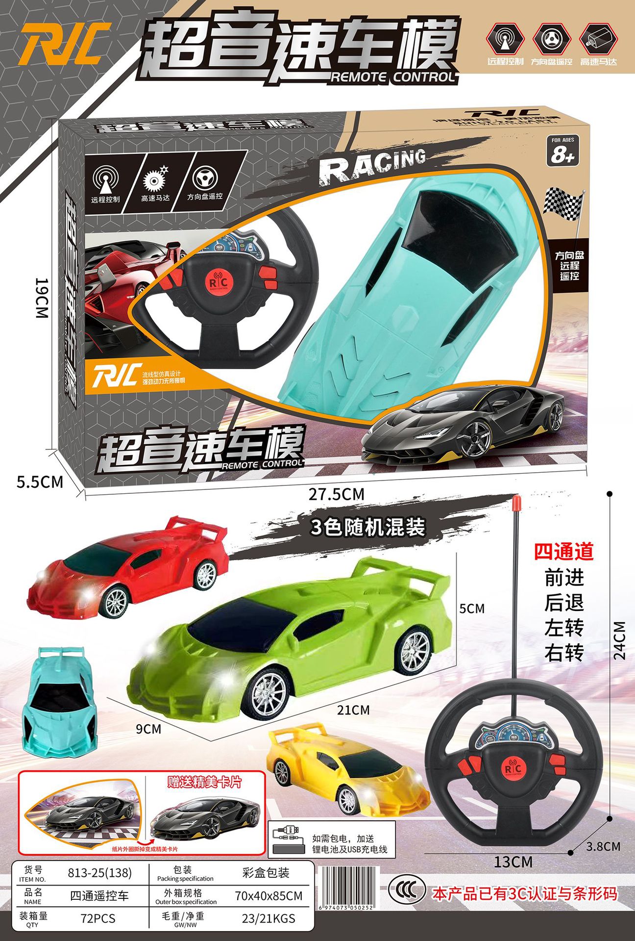 遥控汽车儿童礼品玩具车二通四通男孩遥控跑车赛车摆地摊批发代发