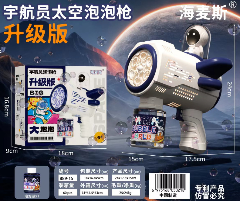 网红太空宇航员泡泡机全自动带灯光泡泡枪加特林儿童玩具地摊批发