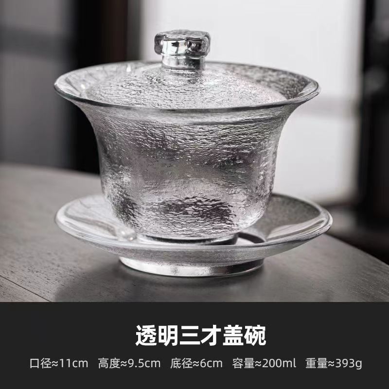 透明玻璃三才盖碗套装 手绘金边玻璃功夫茶具泡茶器家用主人杯子
