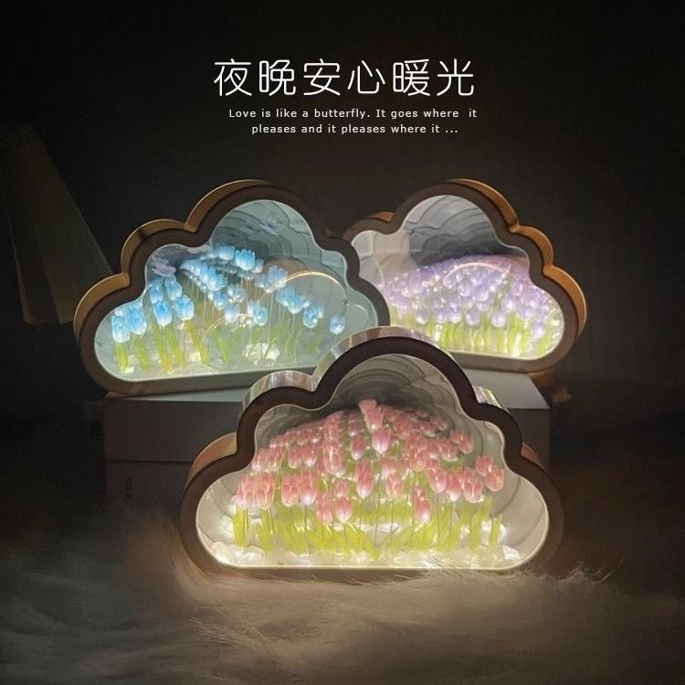 手工diy郁金香云朵花海小夜灯创意灯氛围灯透明镜520节闺蜜礼物
