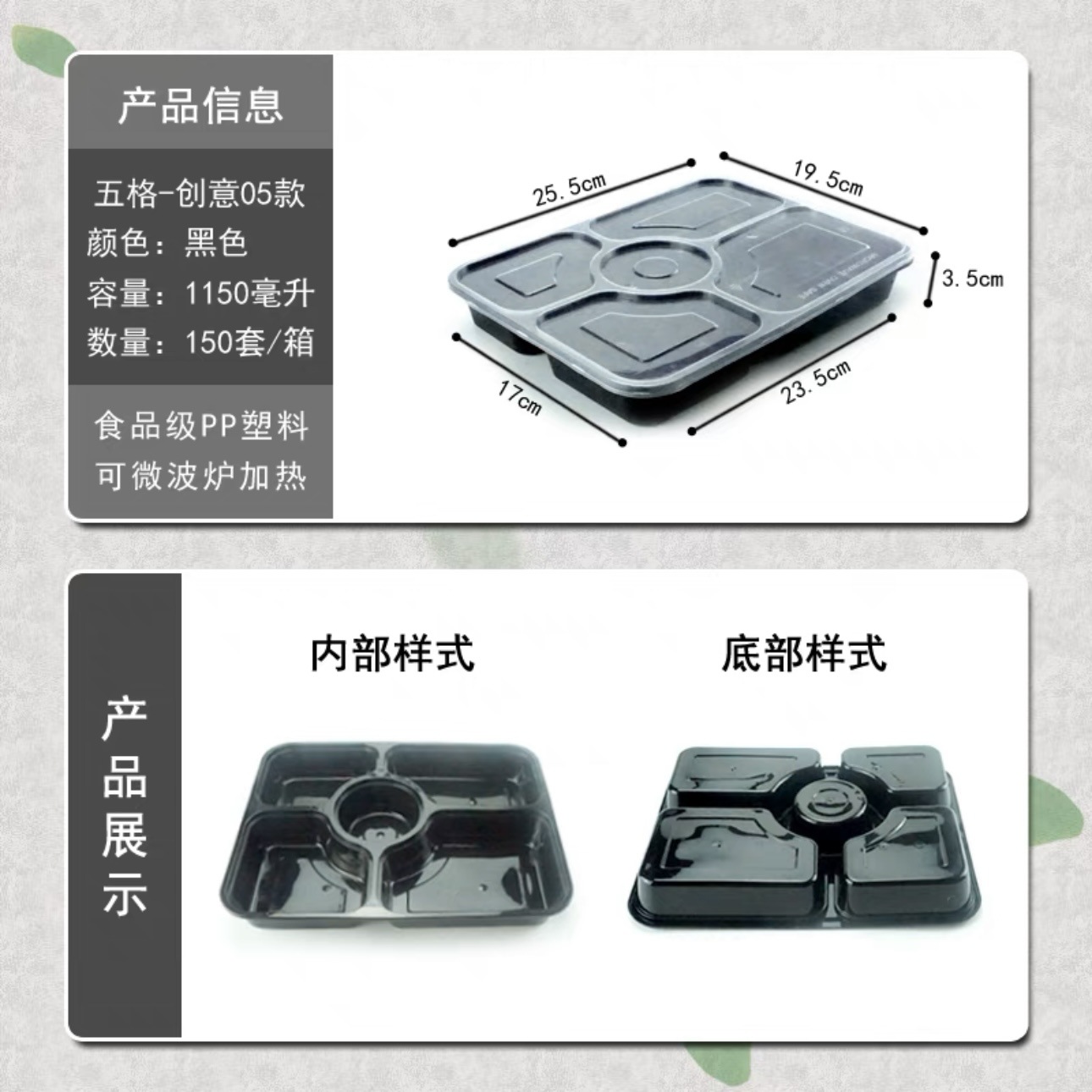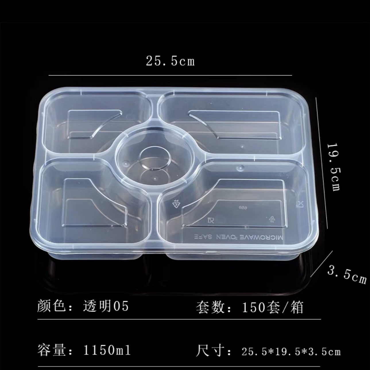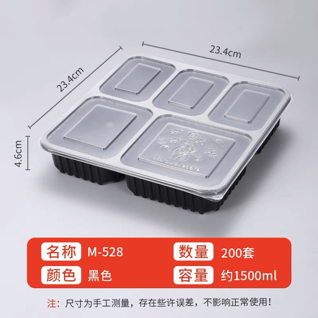 一次性餐盒加厚分格塑料打包盒学生透明黑色三四格快餐外卖盒五格