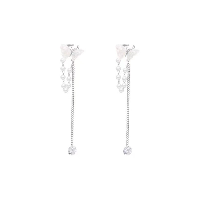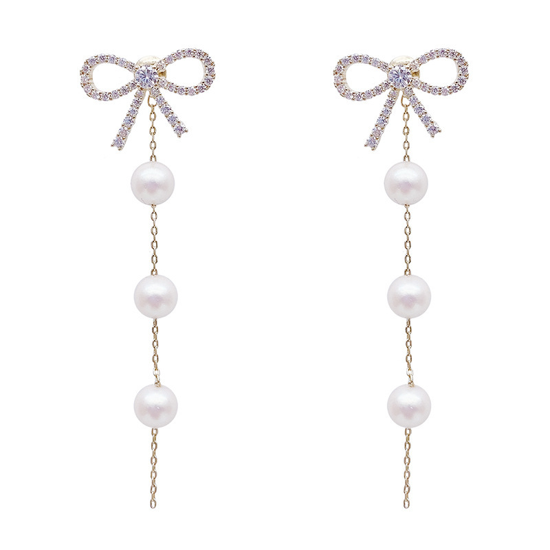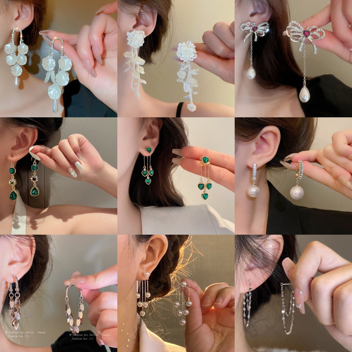 S925银针简约珍珠耳环复古轻奢耳饰高级感耳钉流苏爆款韩风女批发